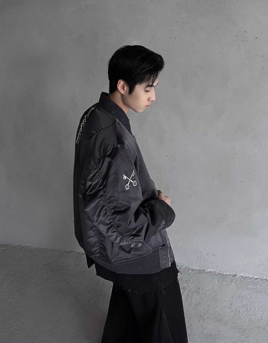UNAWARES. CROSS KEY BADGE BOMBER JACKET QUILTED JACKET