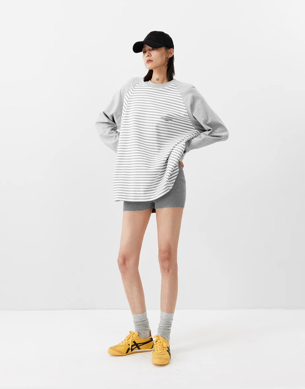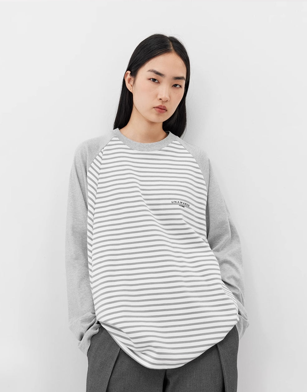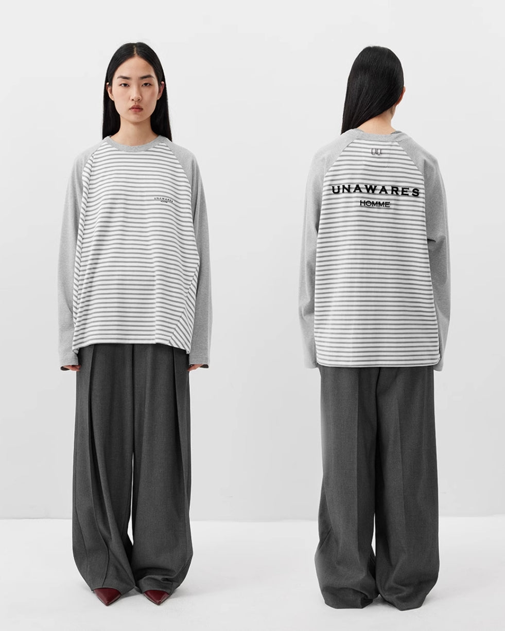 UNAWARES. GREY DOUBLE-SIDED TWO-PIECE LONG-SLEEVED T-SHIRT