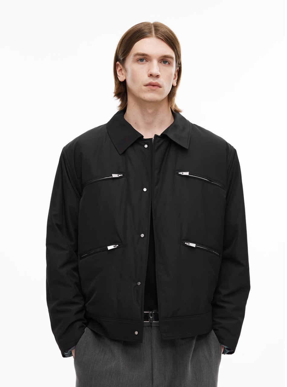 UNAWARES. COTTON JACKET WITH METAL ZIPPER INLAID SQUARE COLLAR CLIP