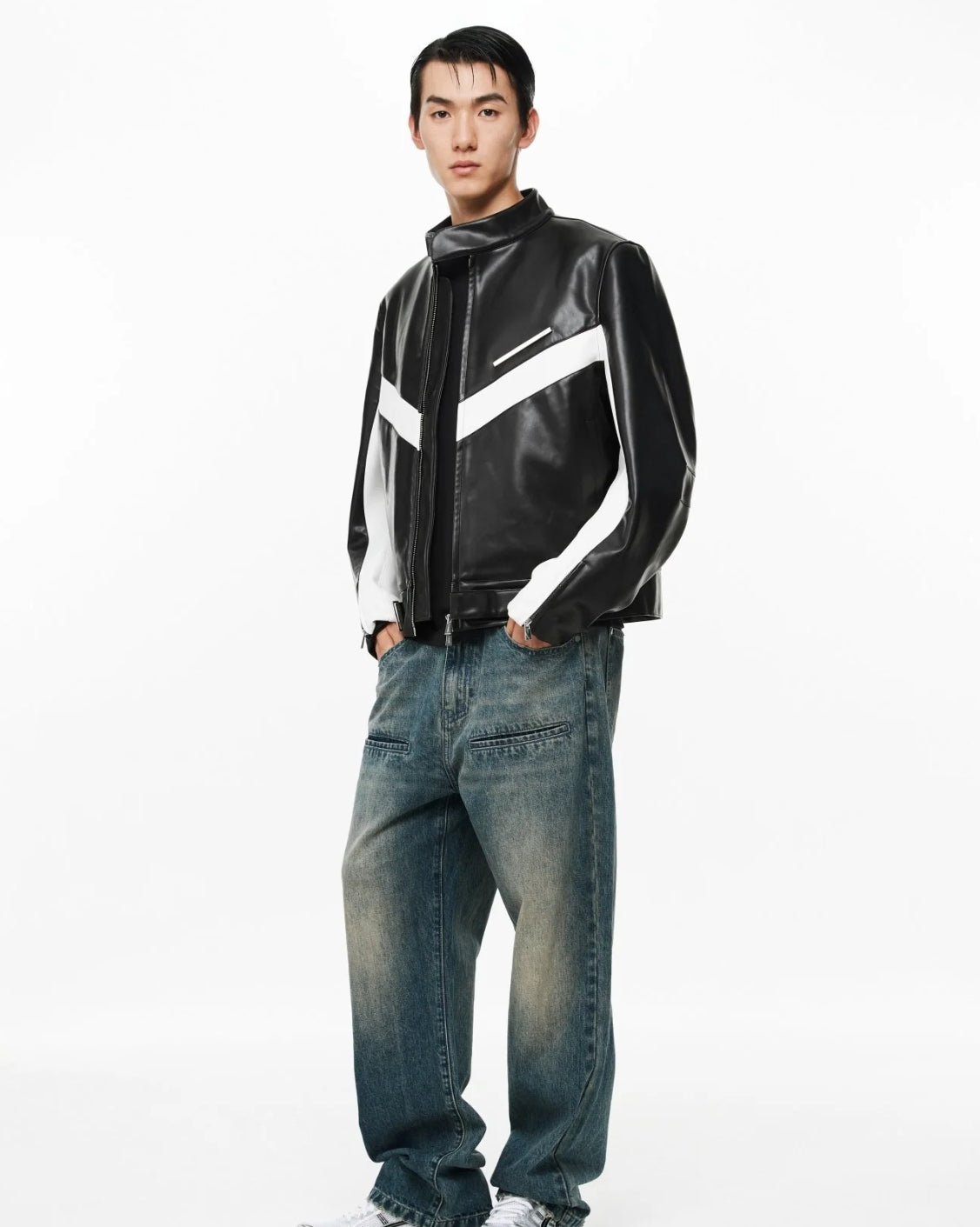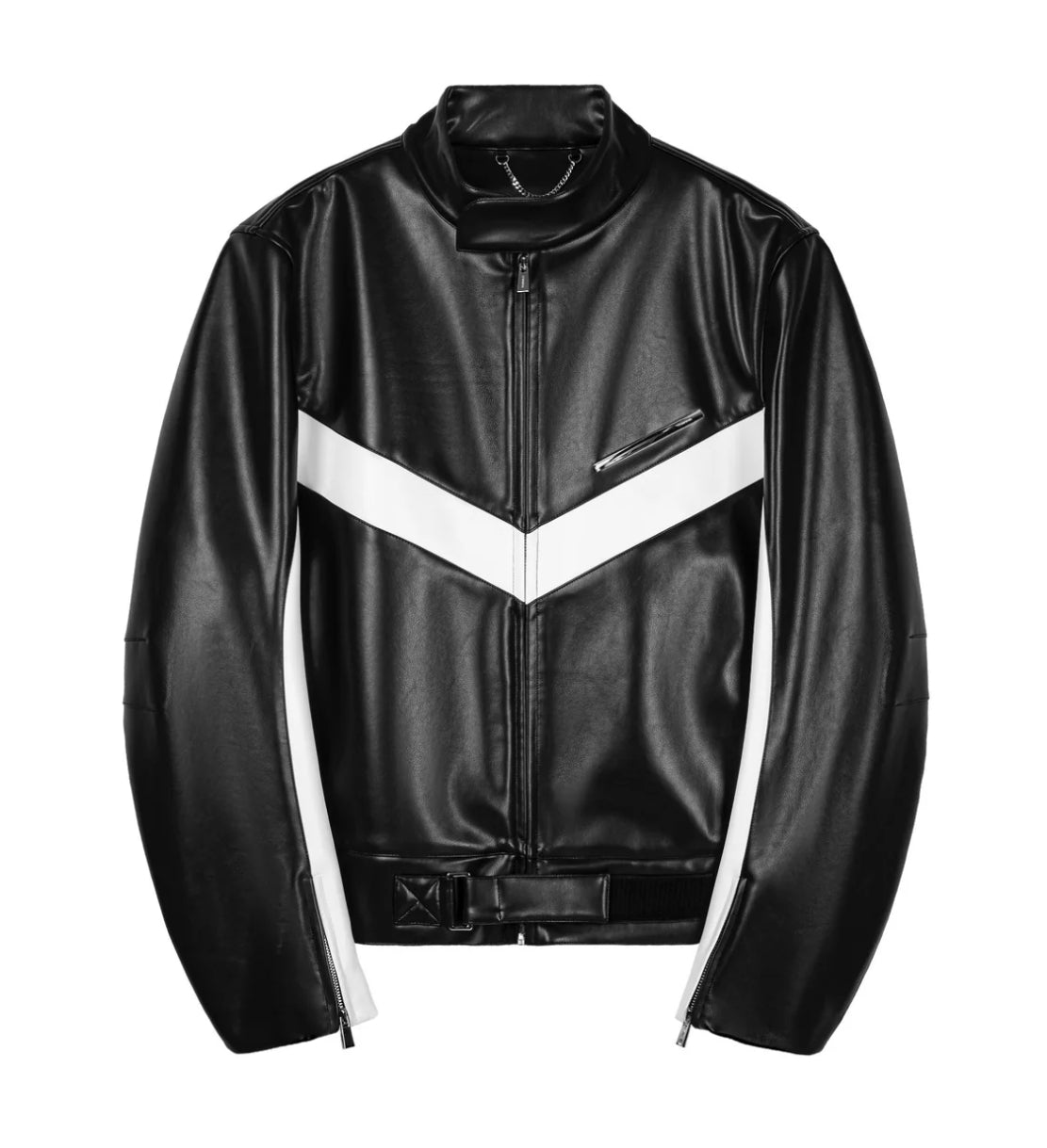 UNAWARES. BLACK METAL STRIP COLOR-BLOCK STRUCTURAL CUT PU JACKET