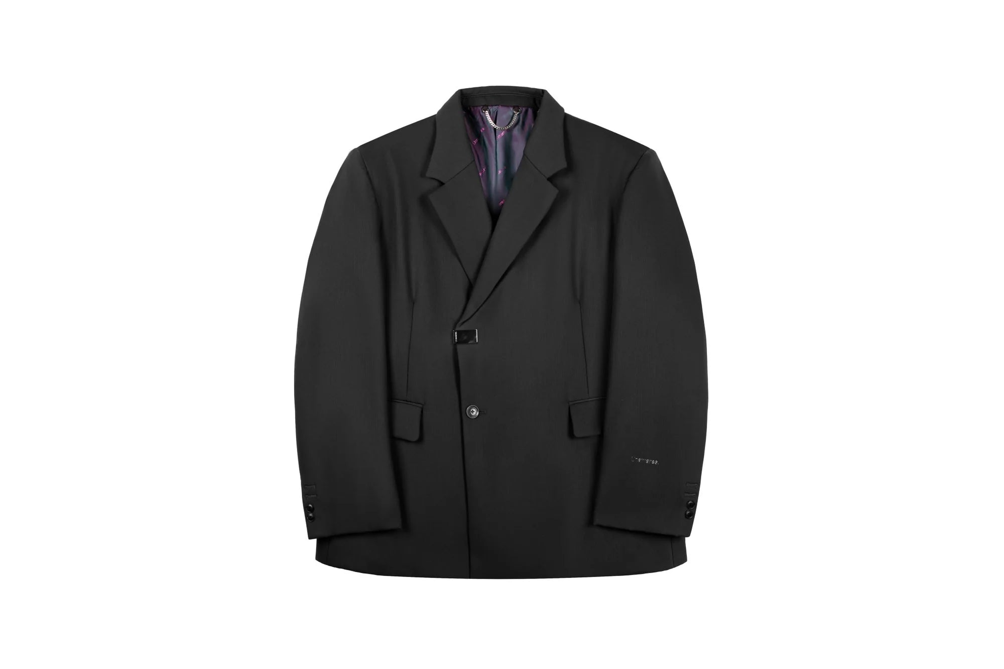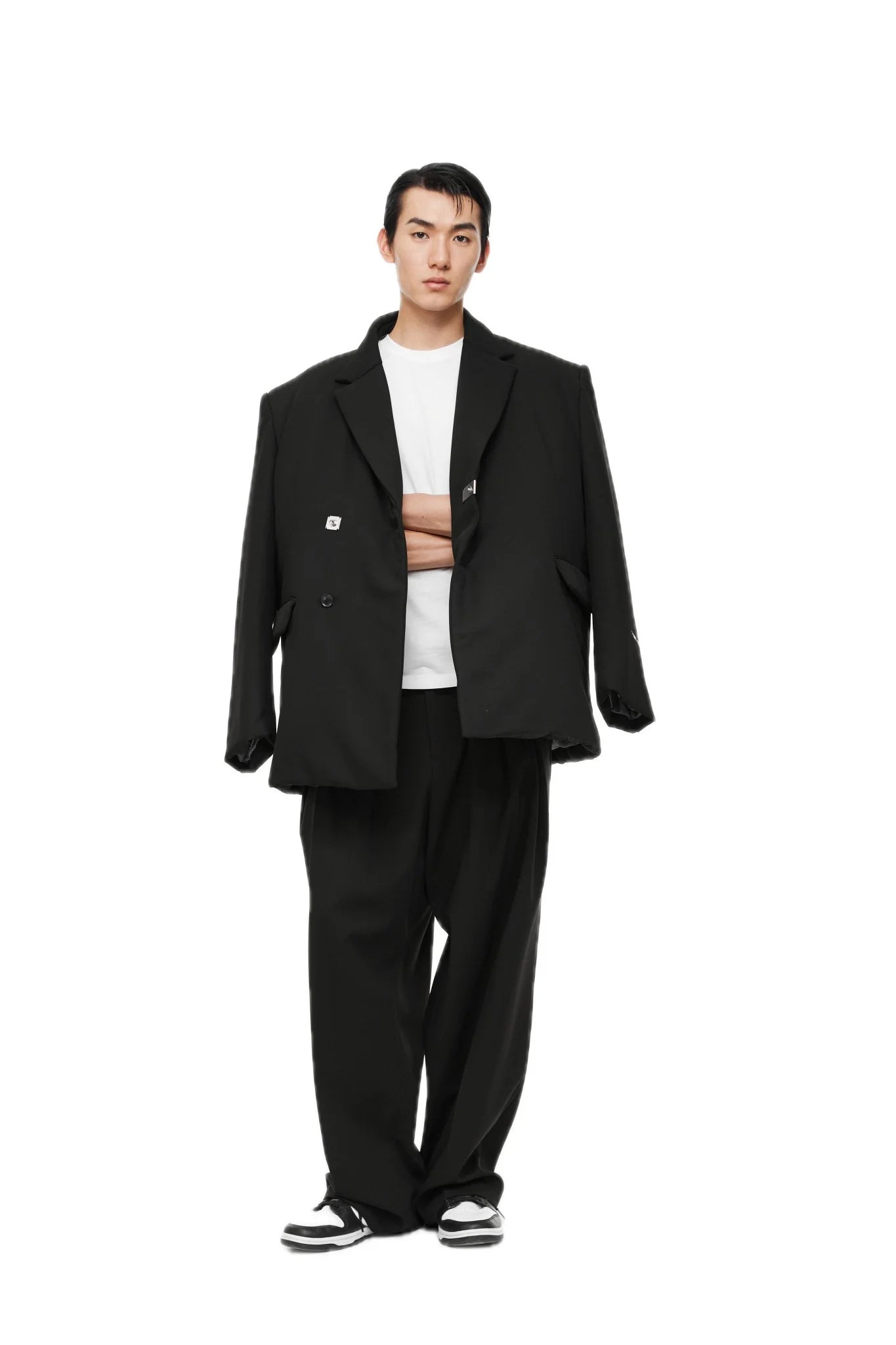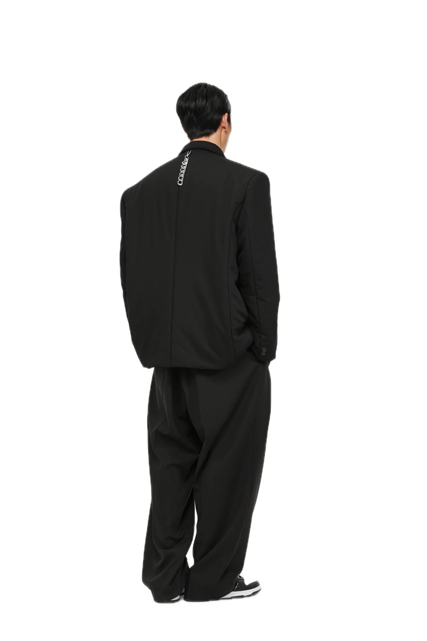 UNAWARES. BLACK CUSTOMIZED ADJUSTABLE DOUBLE-BREASTED JACKET