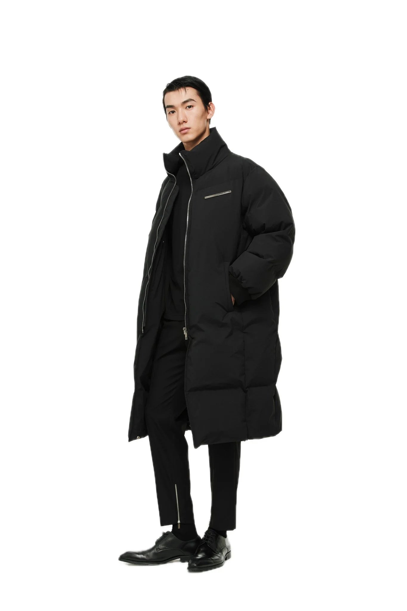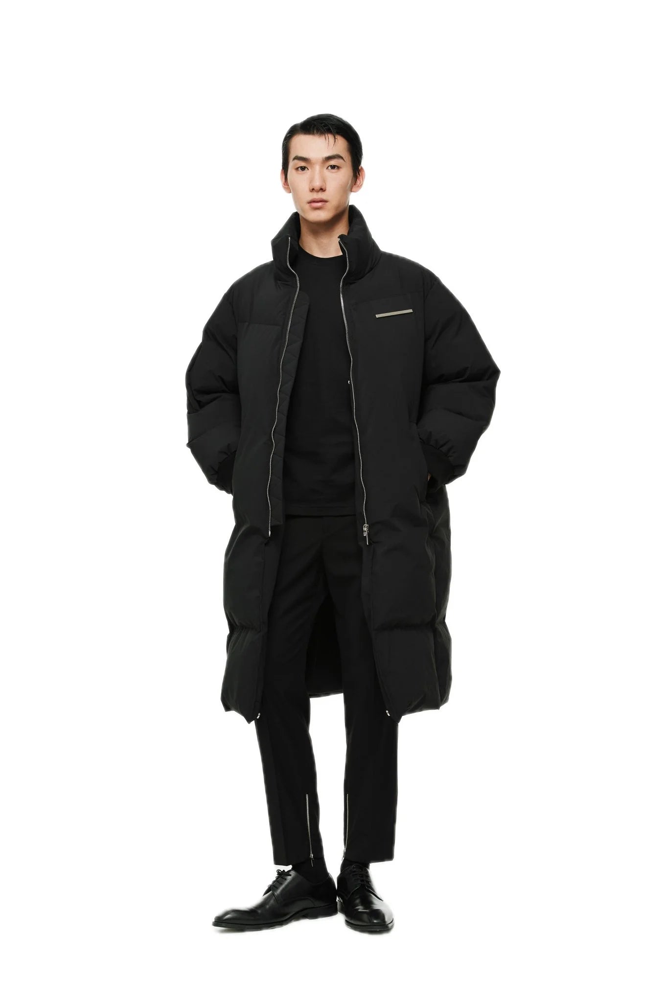 - Horn sleeve design, two-way zipper on the placket, can be worn open, high quality