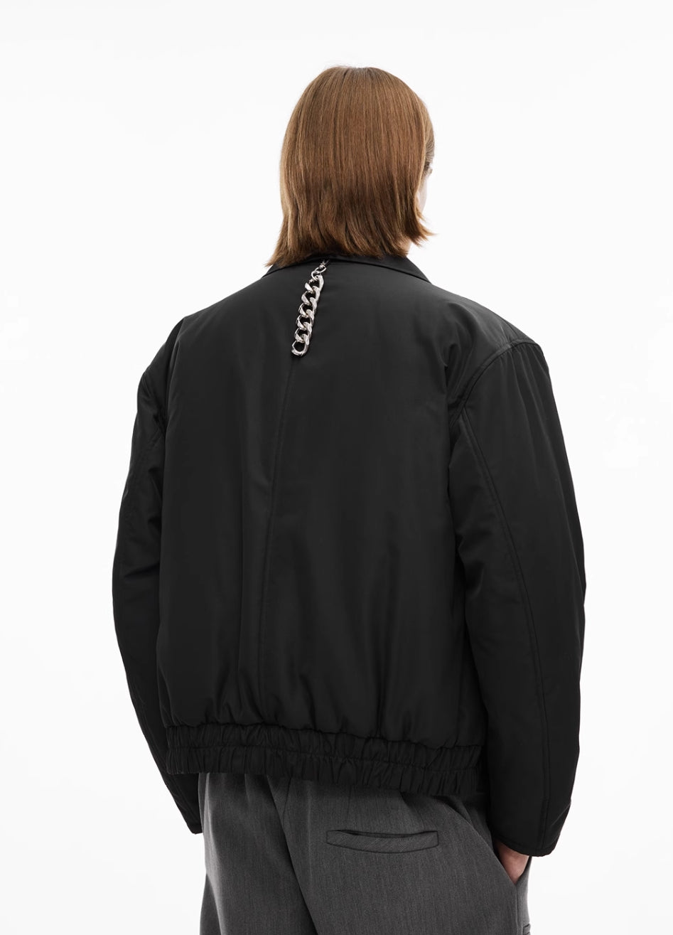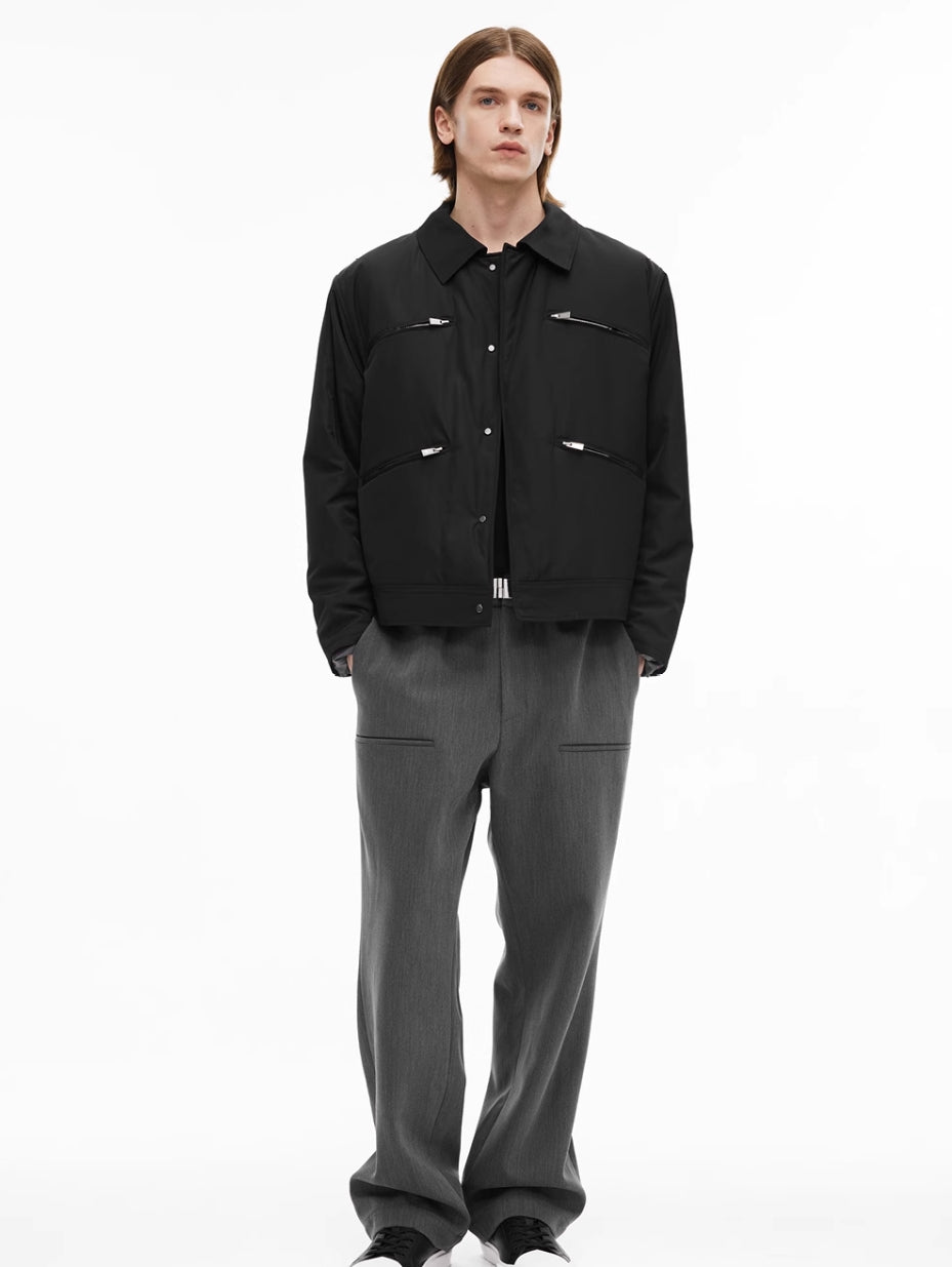 UNAWARES. COTTON JACKET WITH METAL ZIPPER INLAID SQUARE COLLAR CLIP