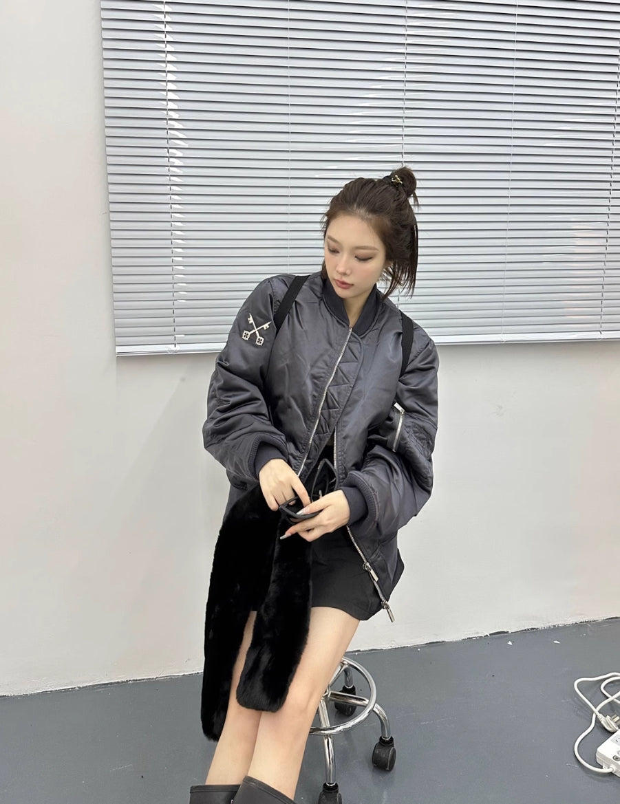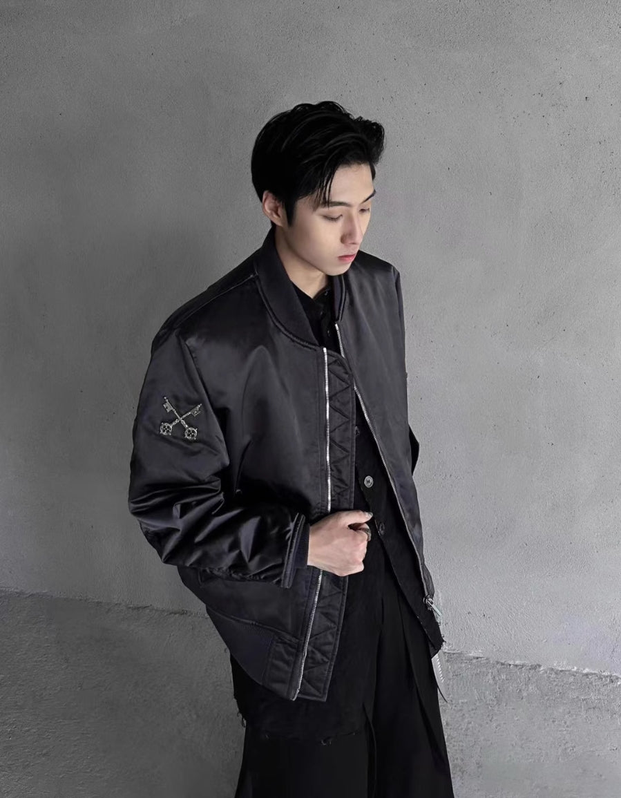 UNAWARES. CROSS KEY BADGE BOMBER JACKET QUILTED JACKET