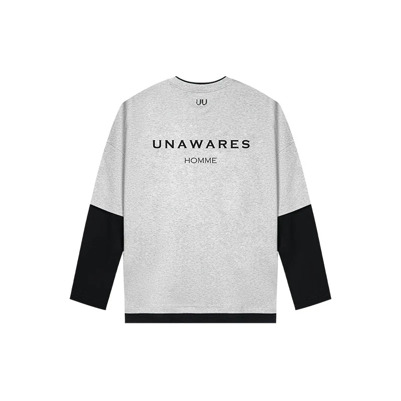 UNAWARES. GREY DOUBLE-SIDED TWO-PIECE LONG-SLEEVED T-SHIRT
