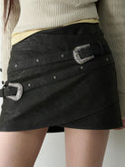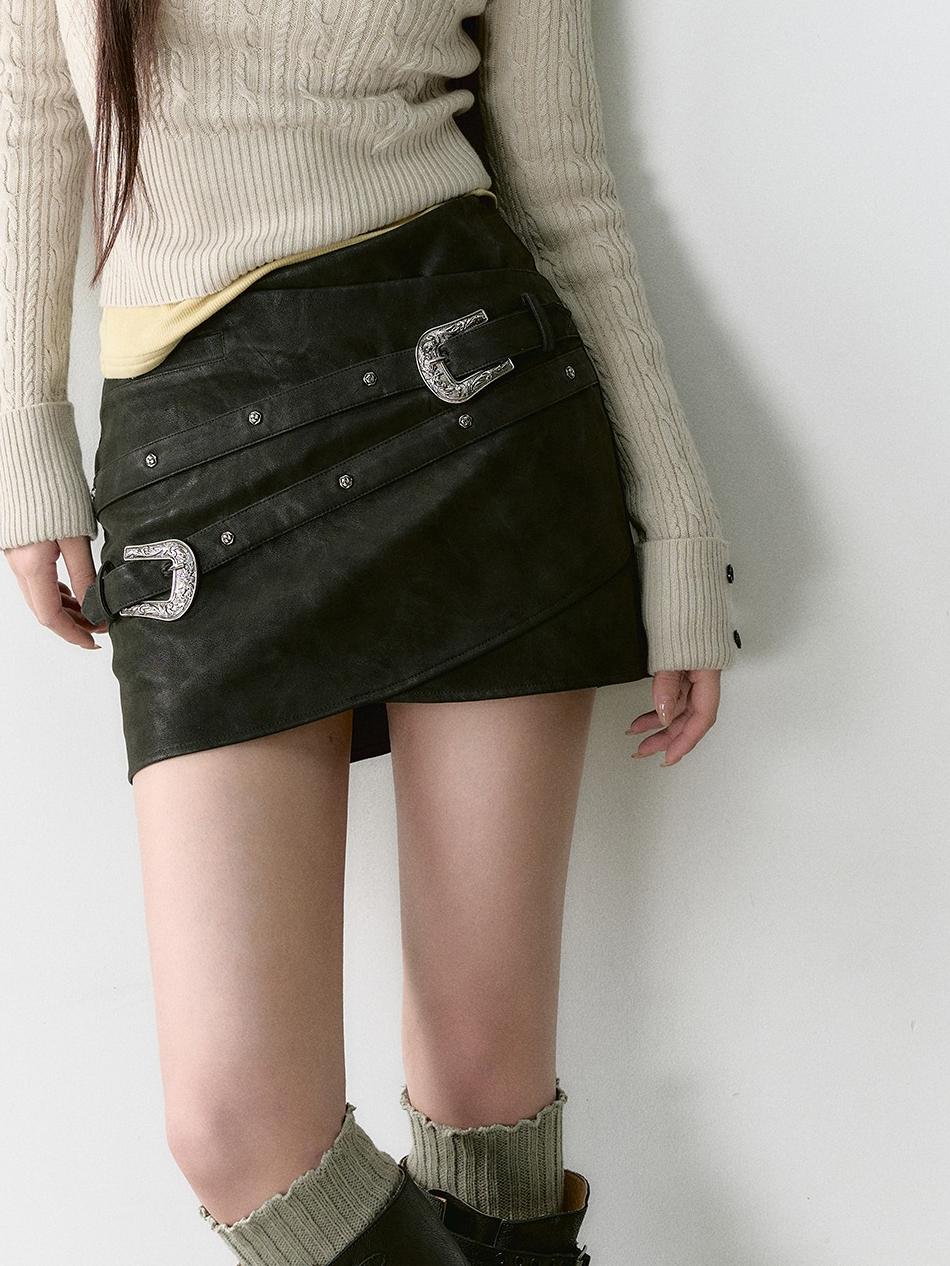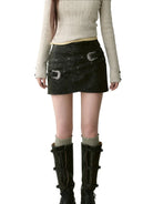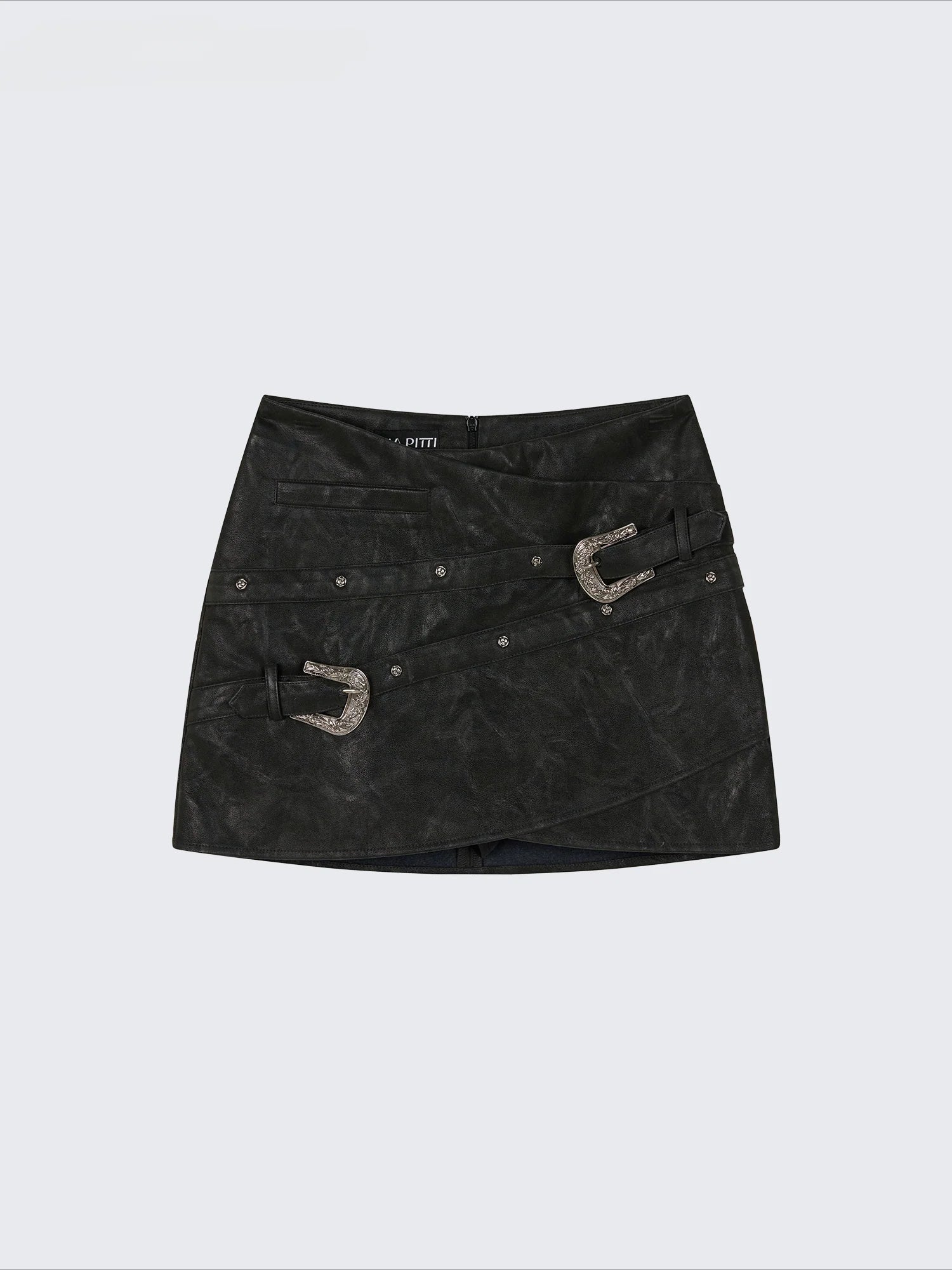 VIA PITTI BLACK BELTED LEATHER MINI SKIRT