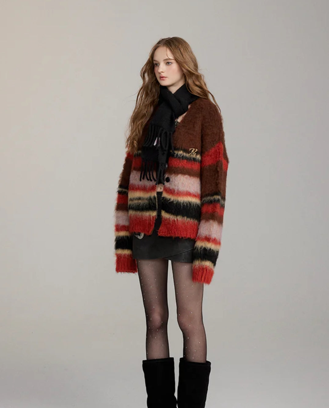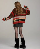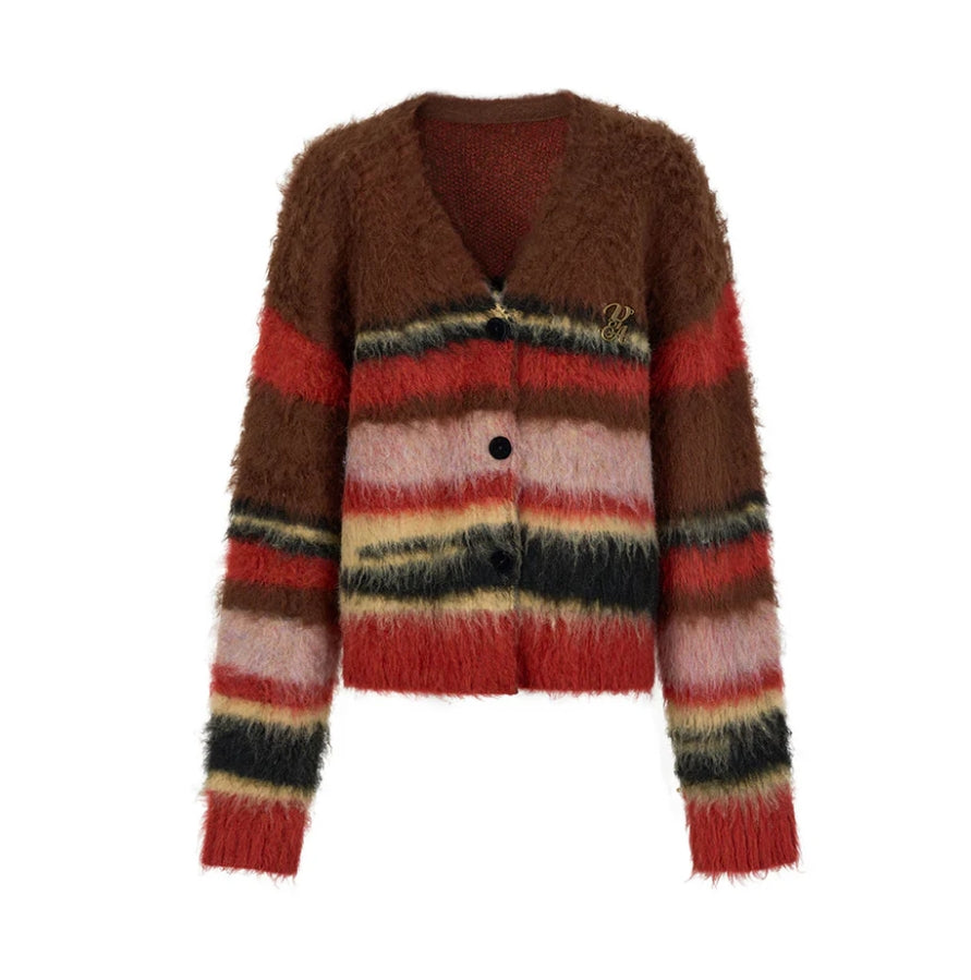 VIA PITTI PULLED FUR COLORED STRIPED KNIT CARDIGAN BROWN