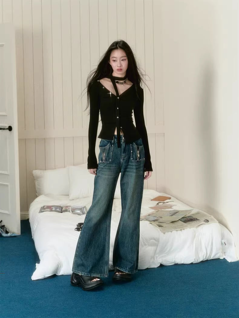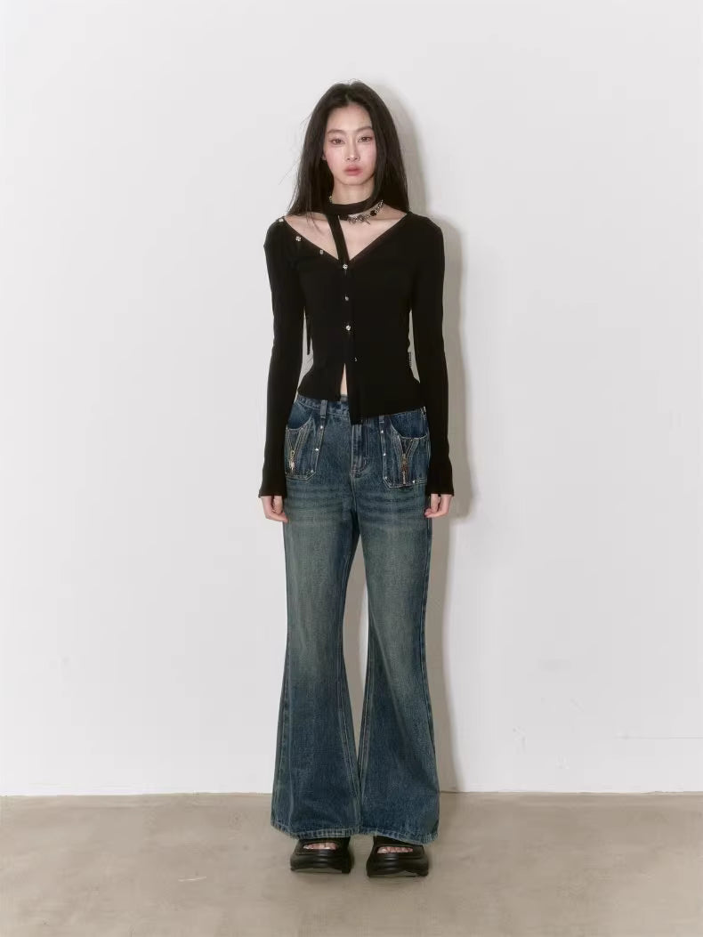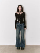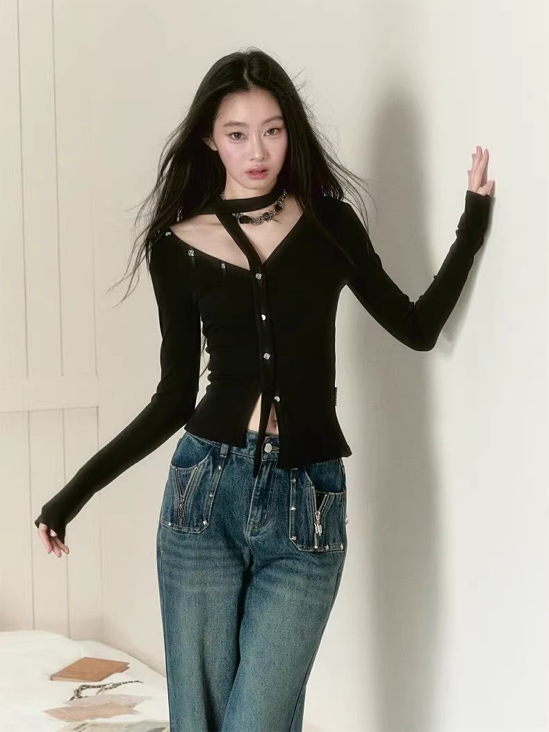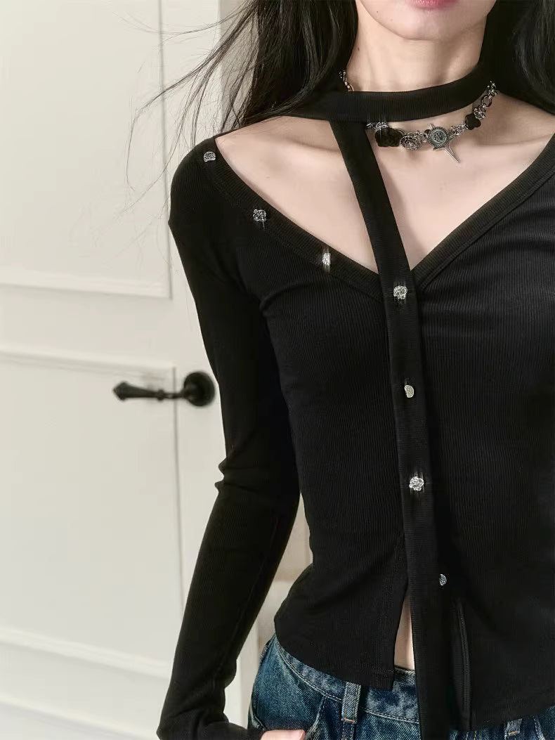 VIA PITTI Slim-Fit Knit Top with Asymmetrical Neckline - Black
