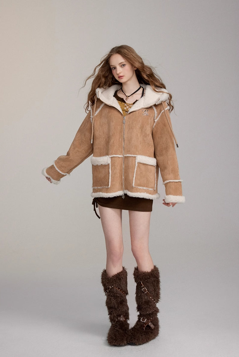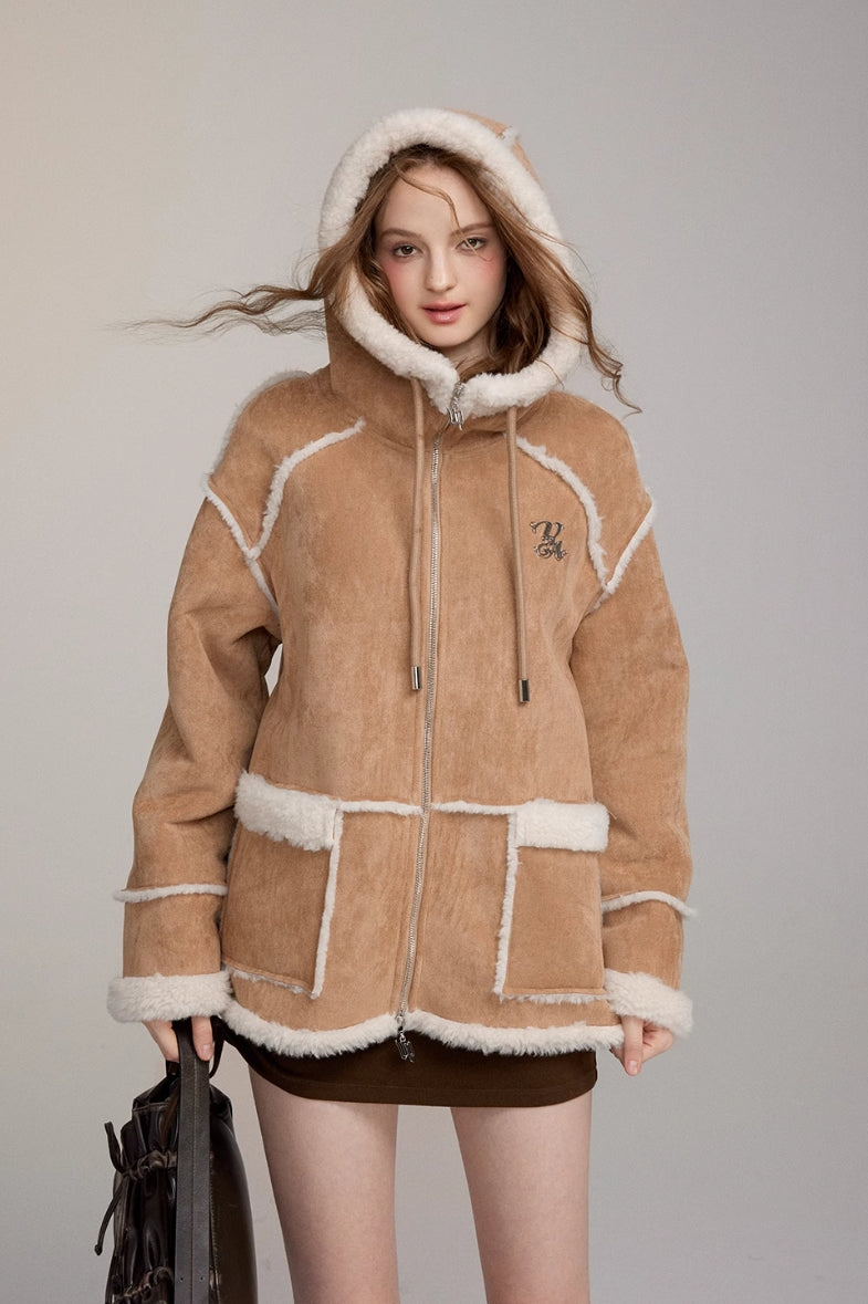 VIAPITTI HEAVY IMITATION FUR ONE BIG HAT THICK WARM COAT
