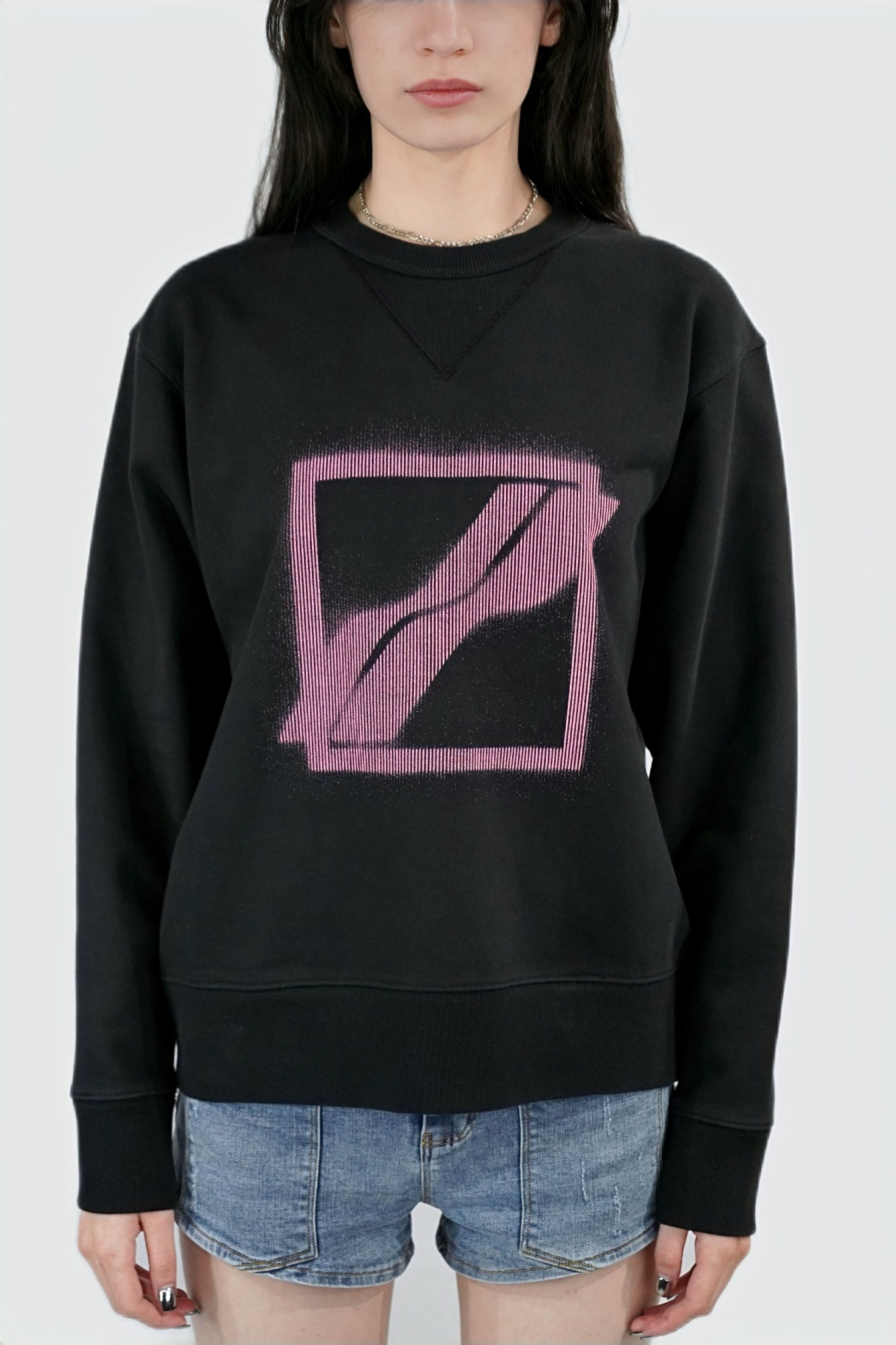 WE11DONE BLACK SLIM LOGO CREWNECK