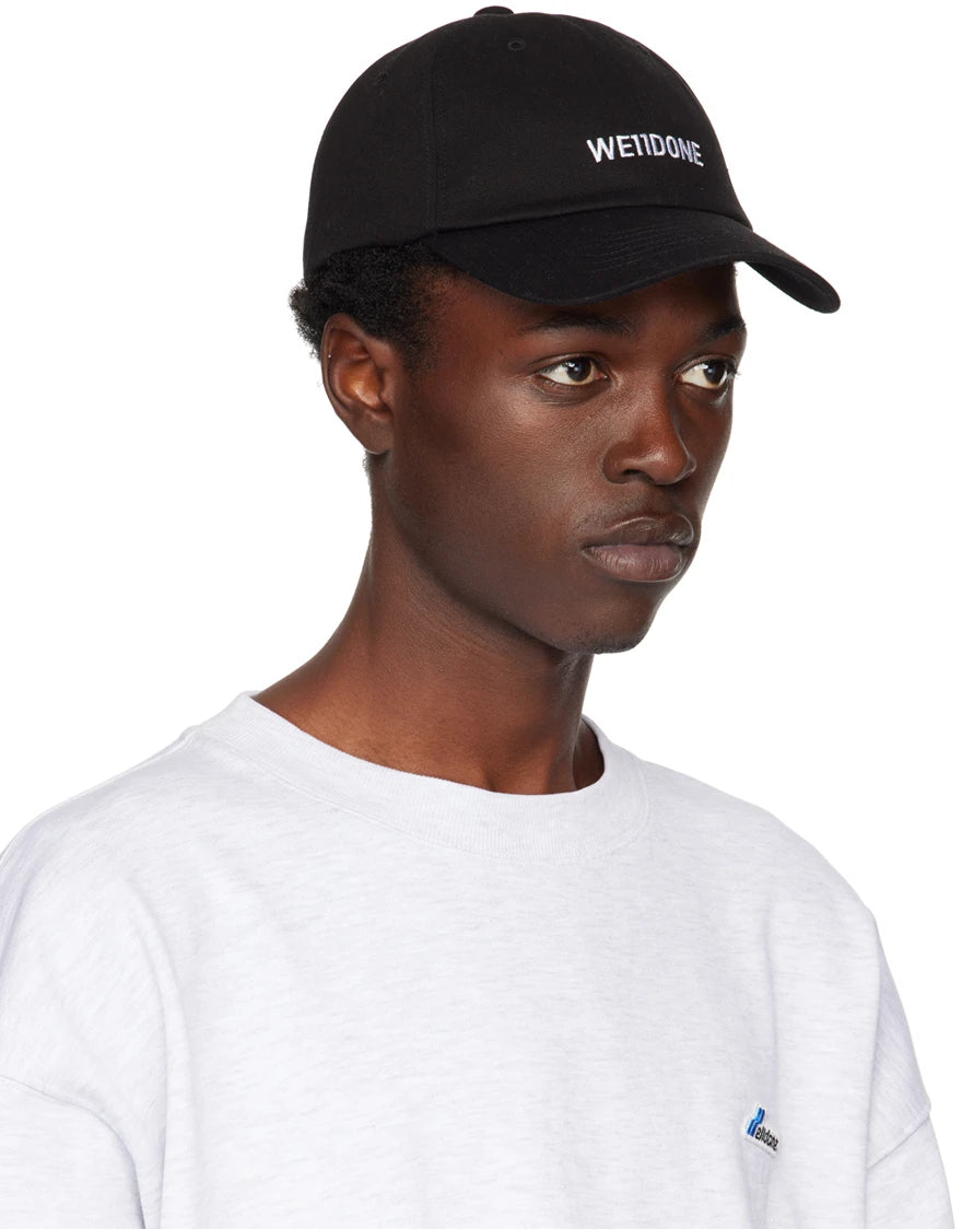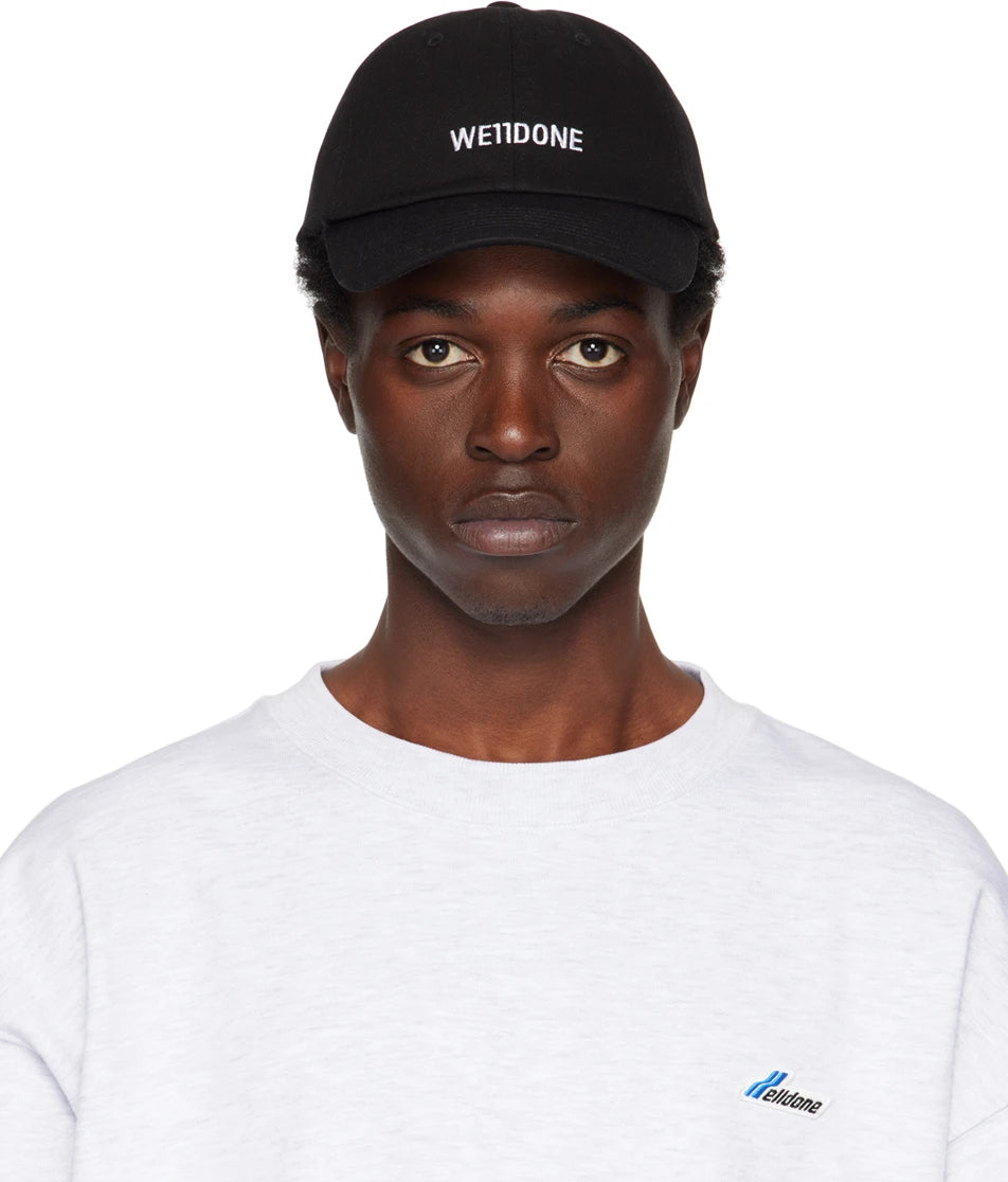 WE11DONE BLACK SMALL LOGO WASHED CAP