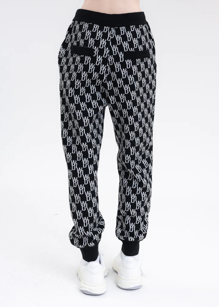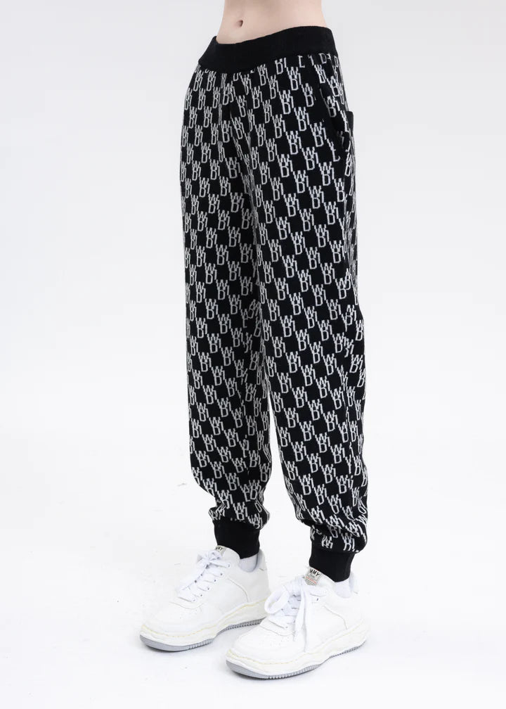 Straight-leg knit wool and cashmere-blend lounge pants featuring jacquard knit logo pattern in white throughout.