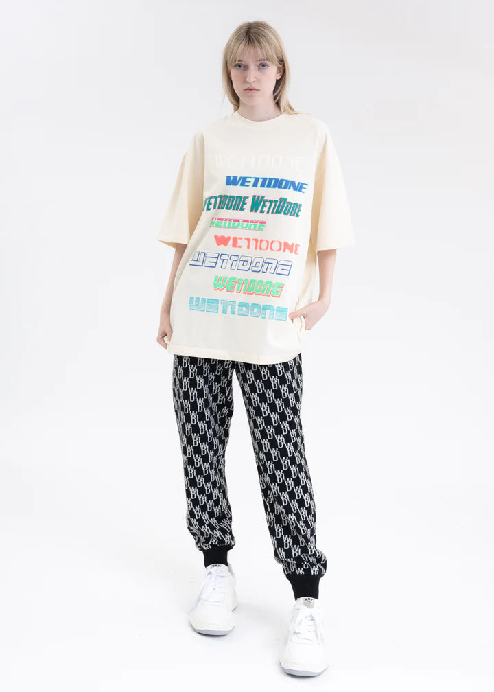 WE11DONE BLACK WOOL KNIT LOGO LOUNGE PANTS