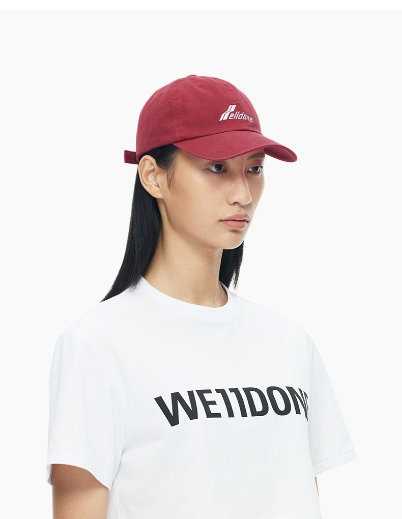 WE11DONE RED WINE WD LOGO WASHED CAP