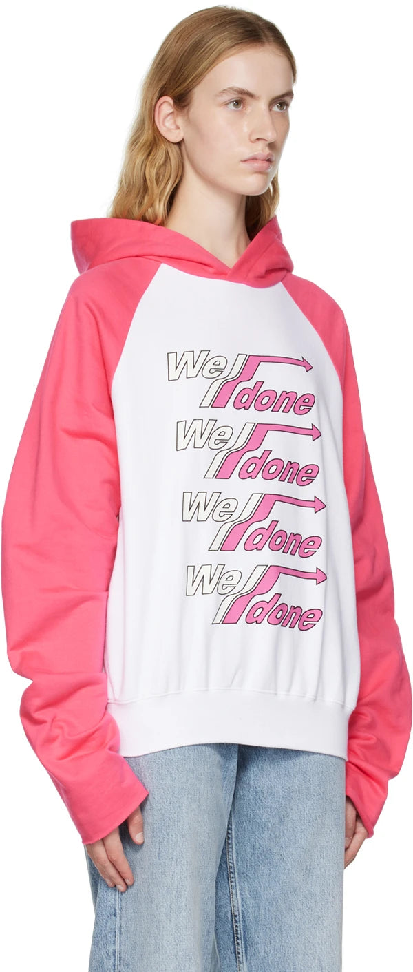 WE11DONE WHITE & PINK RAGLAN HOODIE