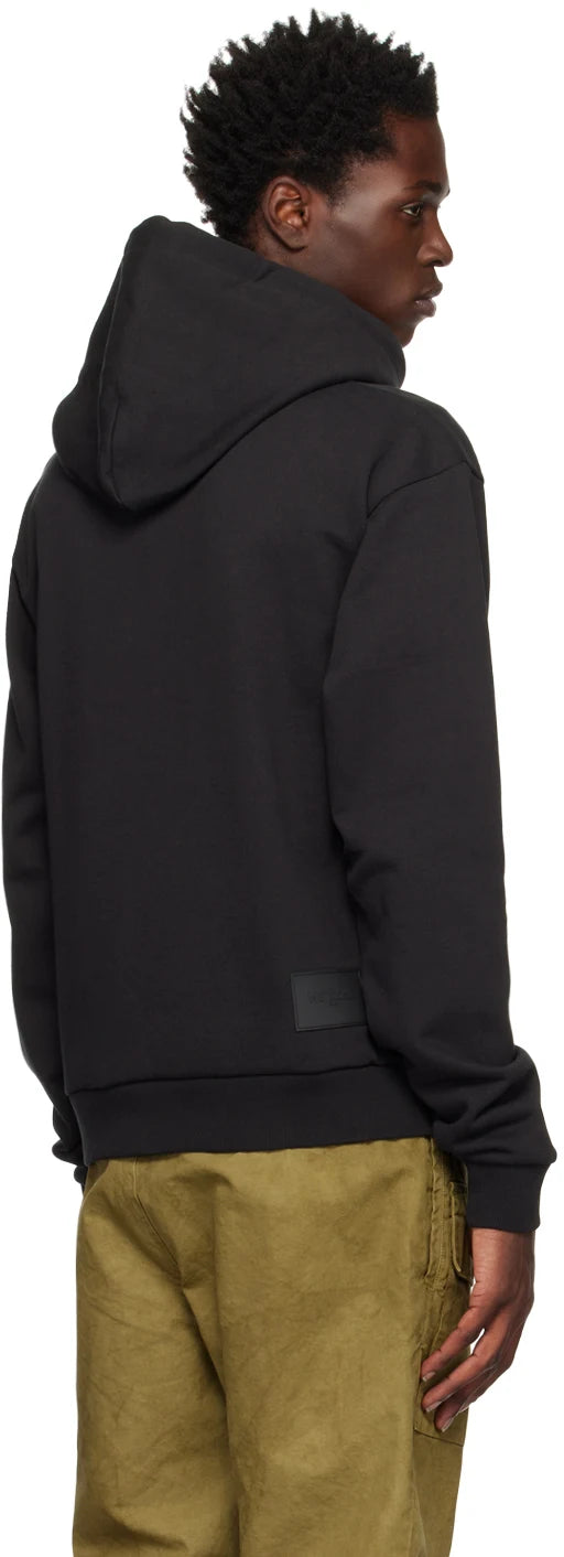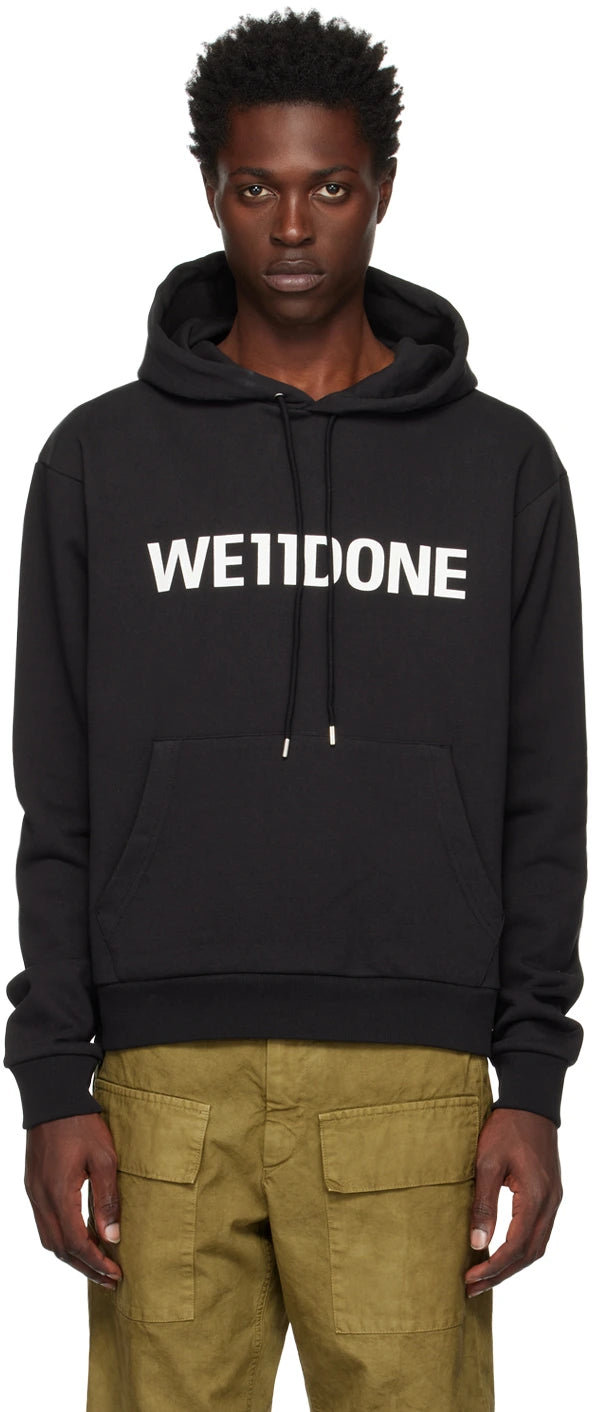 WE11DONE BLACK BASIC LOGO FITTED HOODIE