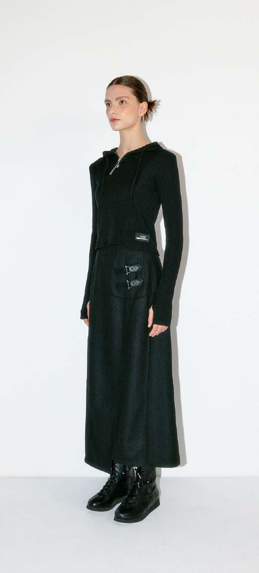 YUSE MIX UNBALANCE HALF ZIP-UP HOODIE TOP BLACK