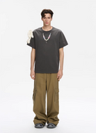 13 DE MARZO BEADED LOGO LOOSE SHORT-SLEEVED T-SHIRT