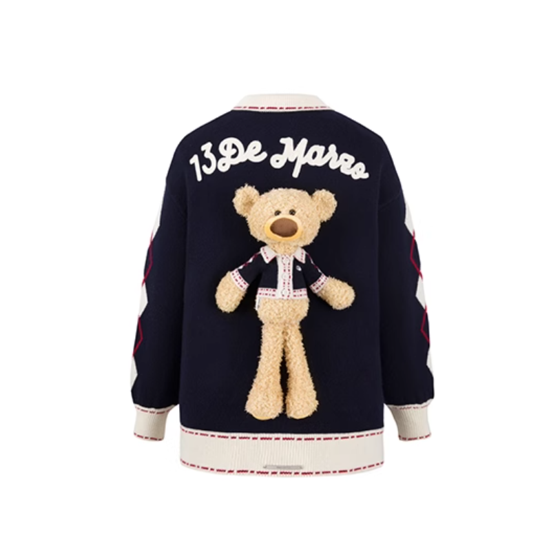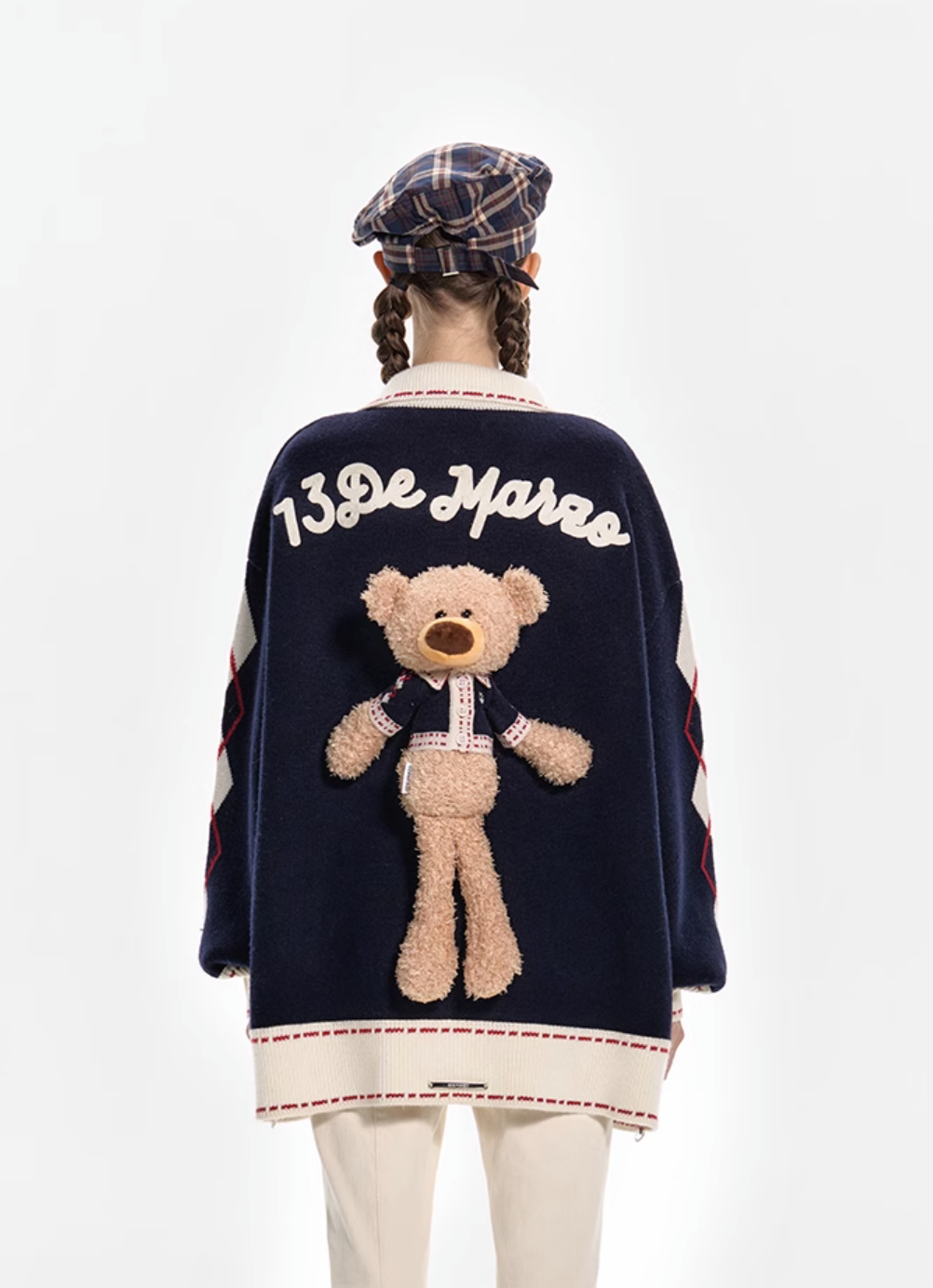 13 DE MARZO BEAR LAPEL NOSTALGIC CARDIGAN