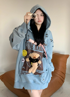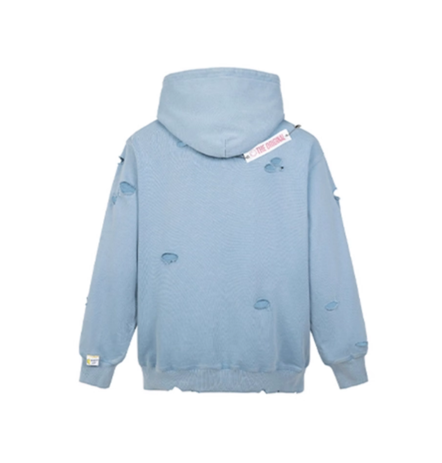 13 DE MARZO BROKEN PIN BADGE BEAR HOODIE BLUE
