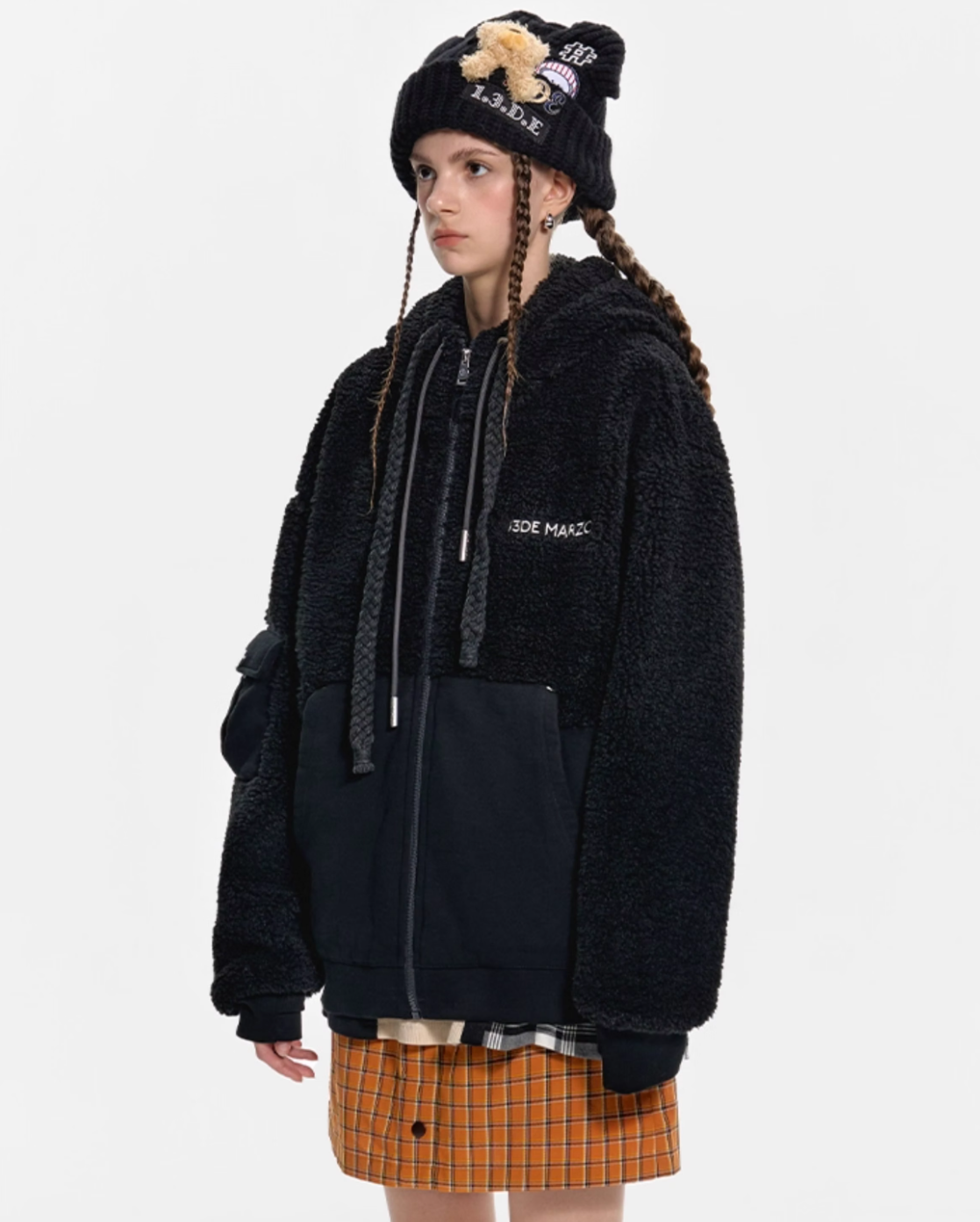 13 DE MARZO IMITATION LAMB WOOL ZIPPER HOODIE JACKET HOODIE