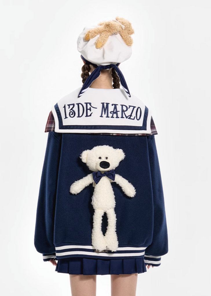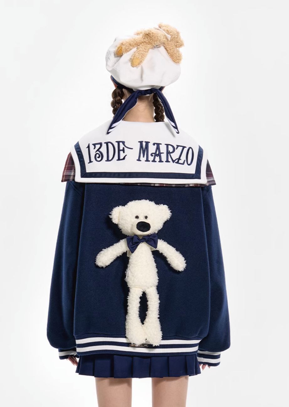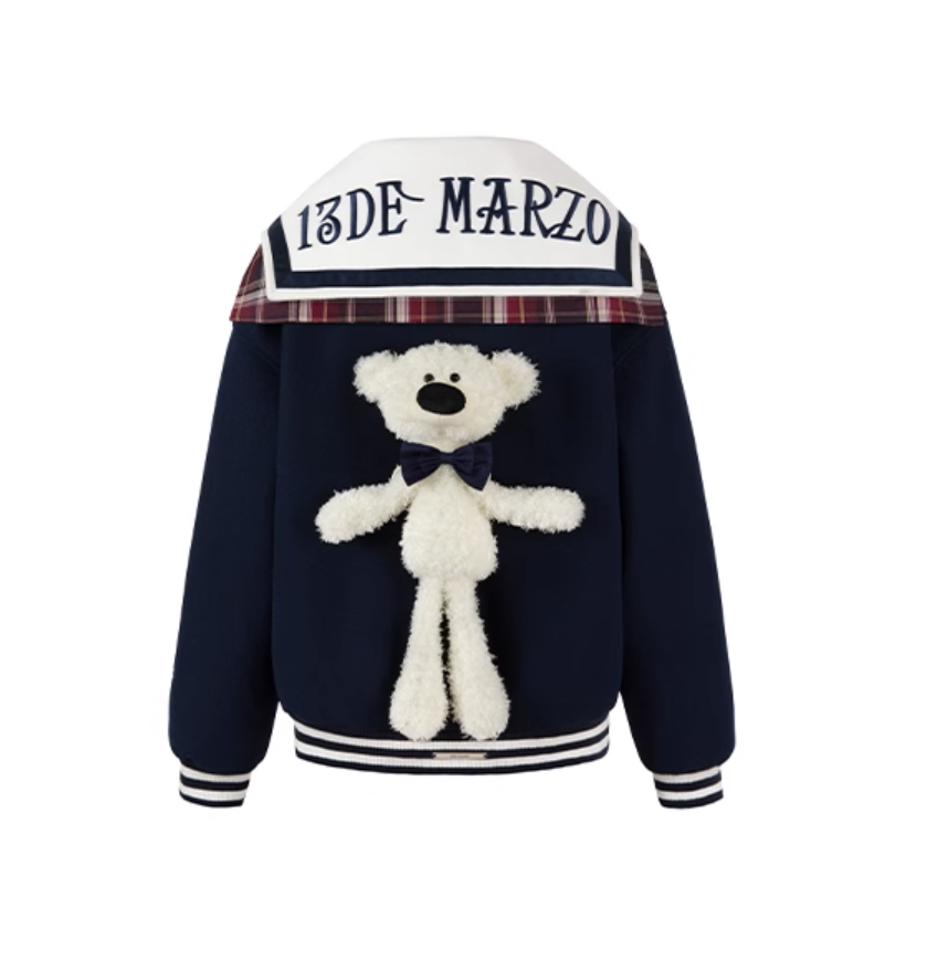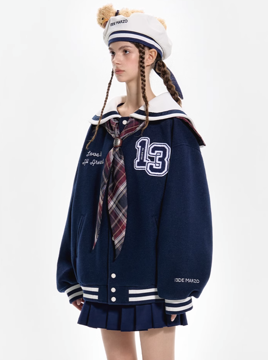 13 DE MARZO NAVY COLLAR FASHION BASEBALL JACKET