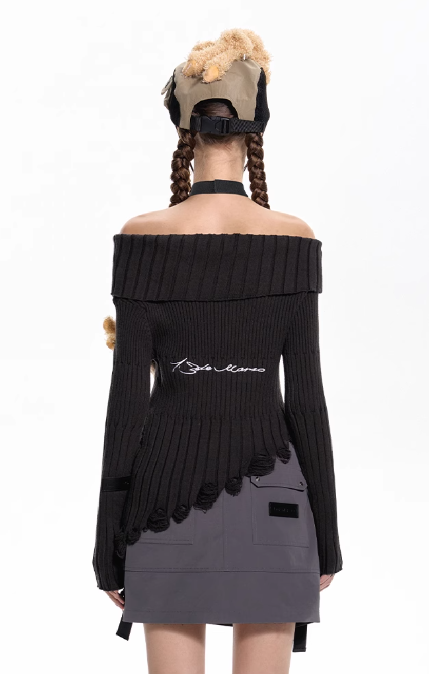13 DE MARZO OFF-THE-SHOULDER SLIM-FIT SWEATER