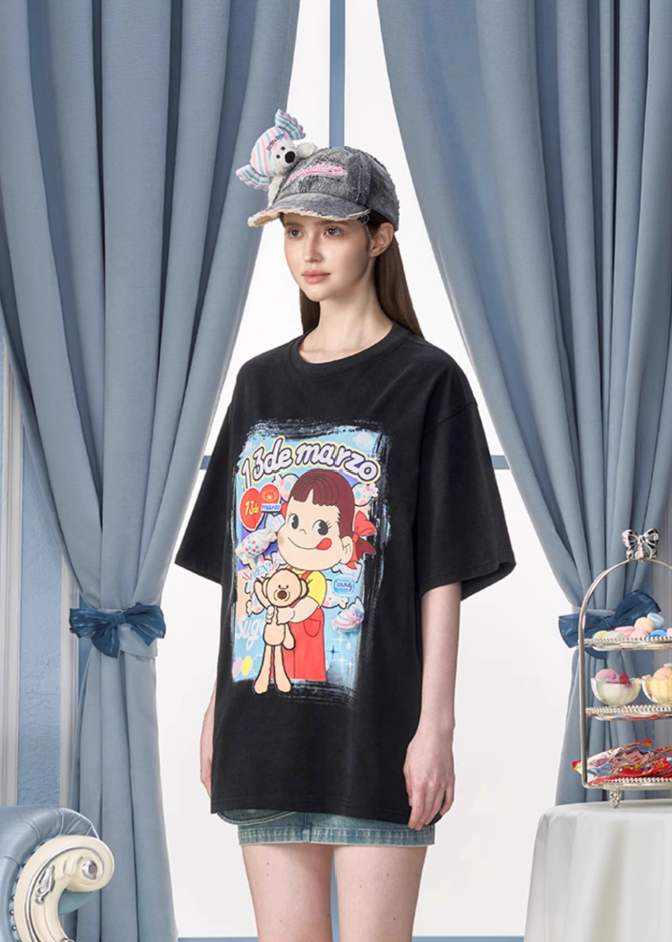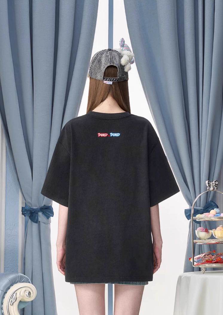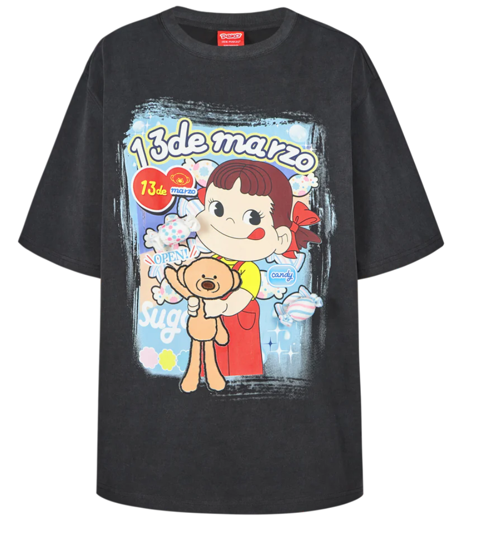 13 DE MARZO PEKO SWEETS BEAR WASHED T-SHIRT BLACK