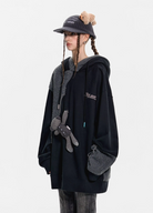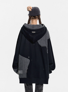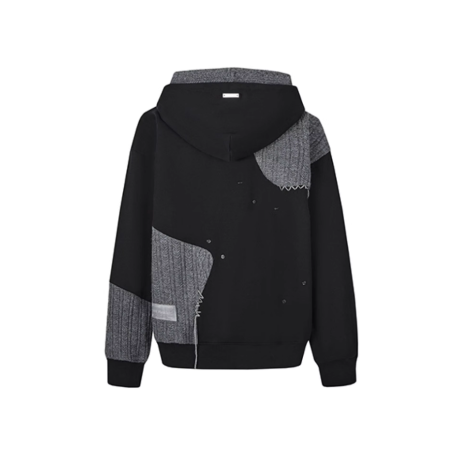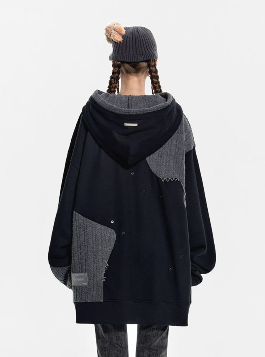 13 DE MARZO WOOLEN SPLICED DOUBLE CAP PLEATED LOOSE HOODIE