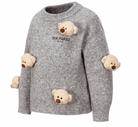 This playful wool-blend sweater creatively integrates teddy bear plush elements throughout the garment. The teddy toys are attached in varying positions across the sweater, with several featuring built-in squeaky air pouches that make a sound when gently pressed. The combination of soft plush texture and interactive sound sparks children¡¯s curiosity and imagination, transforming everyday wear into a joyful and surprising experience.