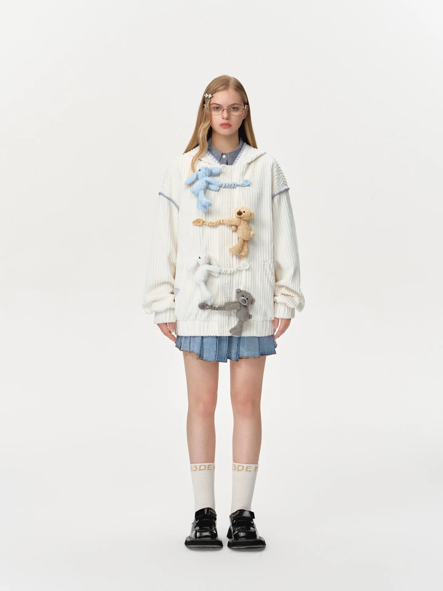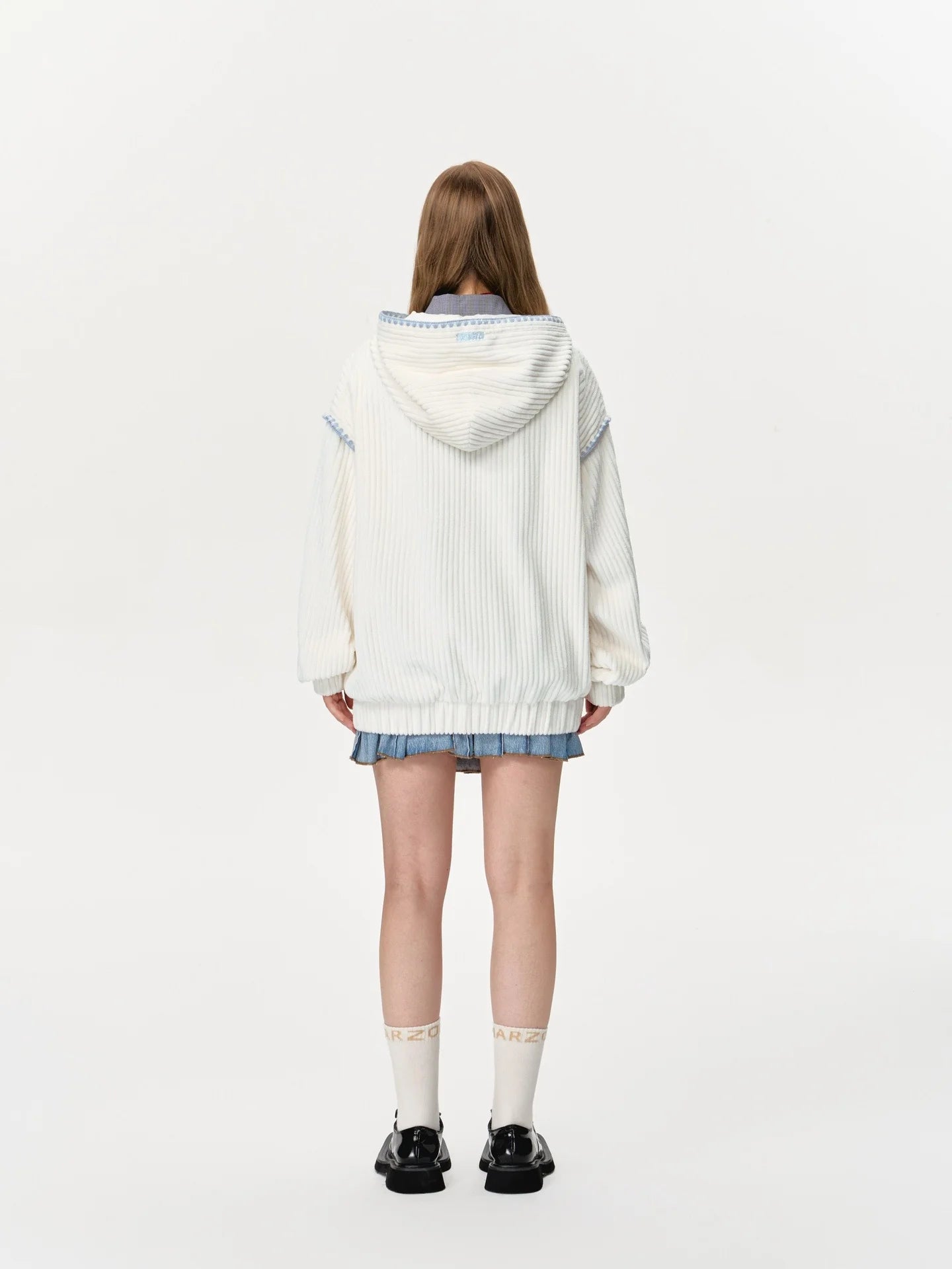 13De Marzo Friends Hangout Corduroy Zip Hoodie White