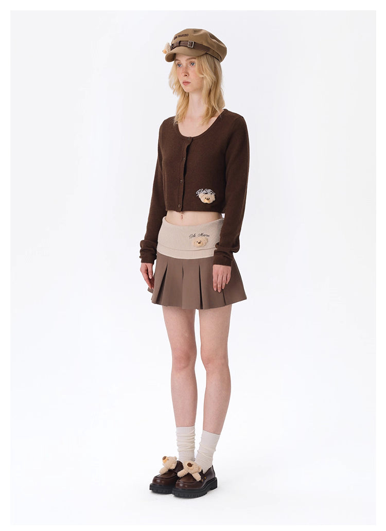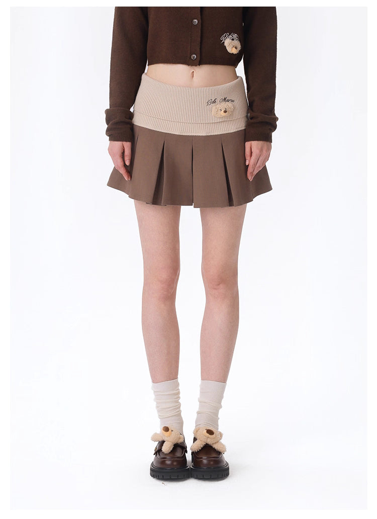 13DE MARZO Knitted Pleated Skirt with Fold-over Waist Panel - Brown