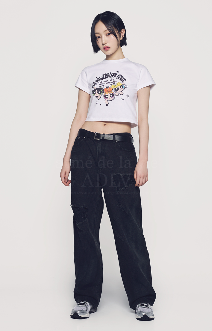 ADLV The Powerpuff Girls x acmedelavie crayon artwork crop t-shirts WHITE