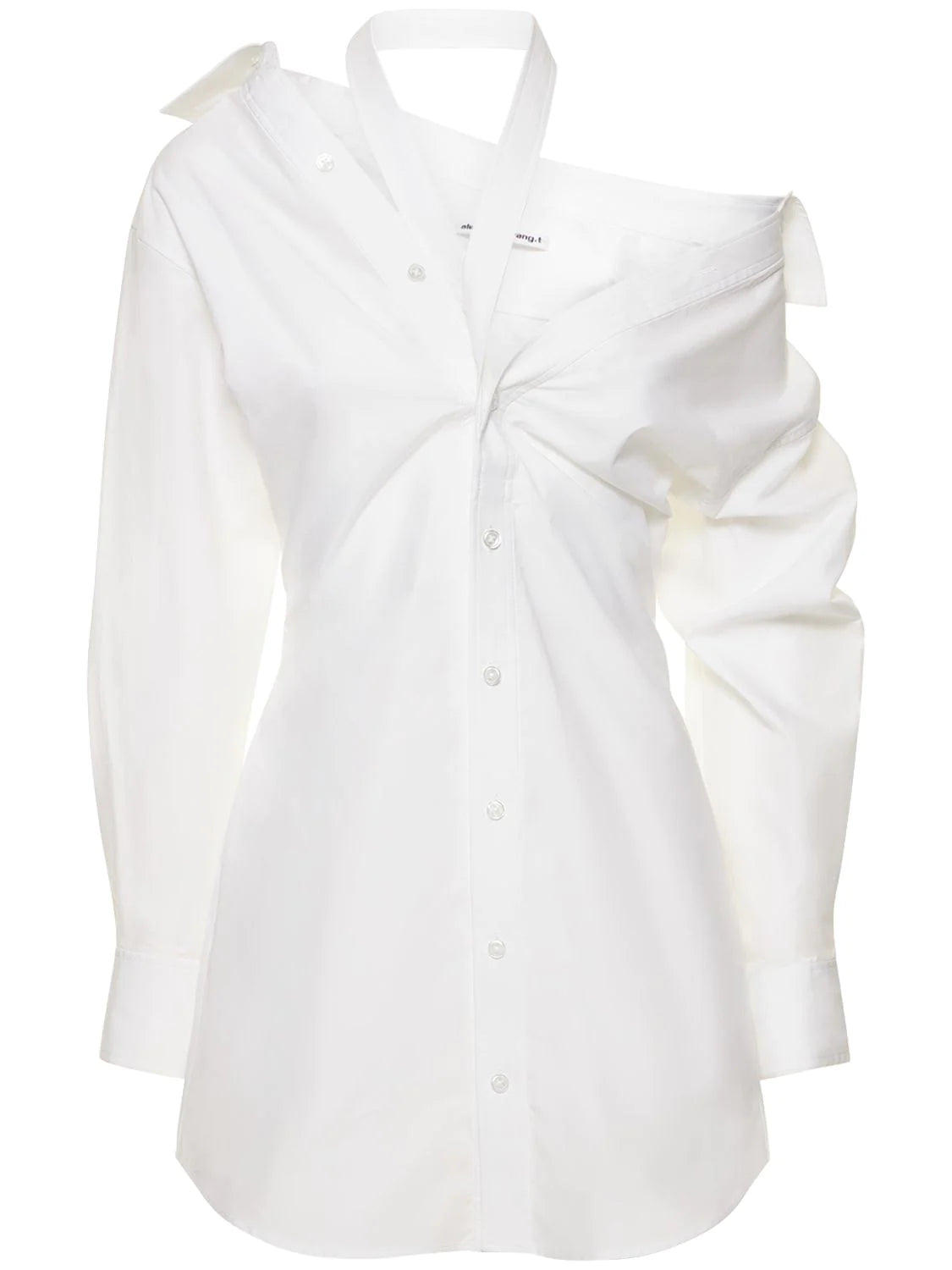 ALEXANDER WANG OFF-THE-SHOULDER FITTED MINI SHIRT DRESS
