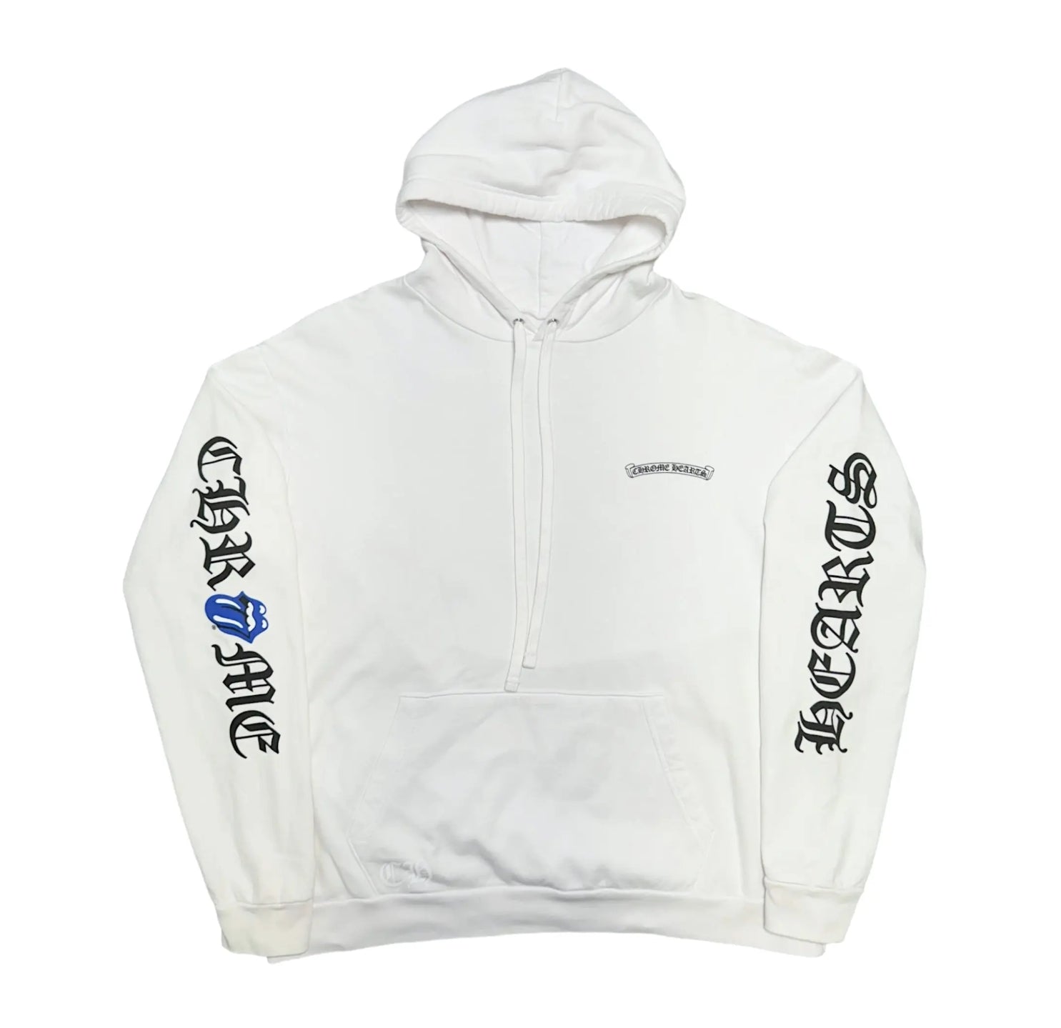 CHROME HEARTS ROLLING STONES BIG LIP HOODED SWEATSHIRT WHITE BLUE