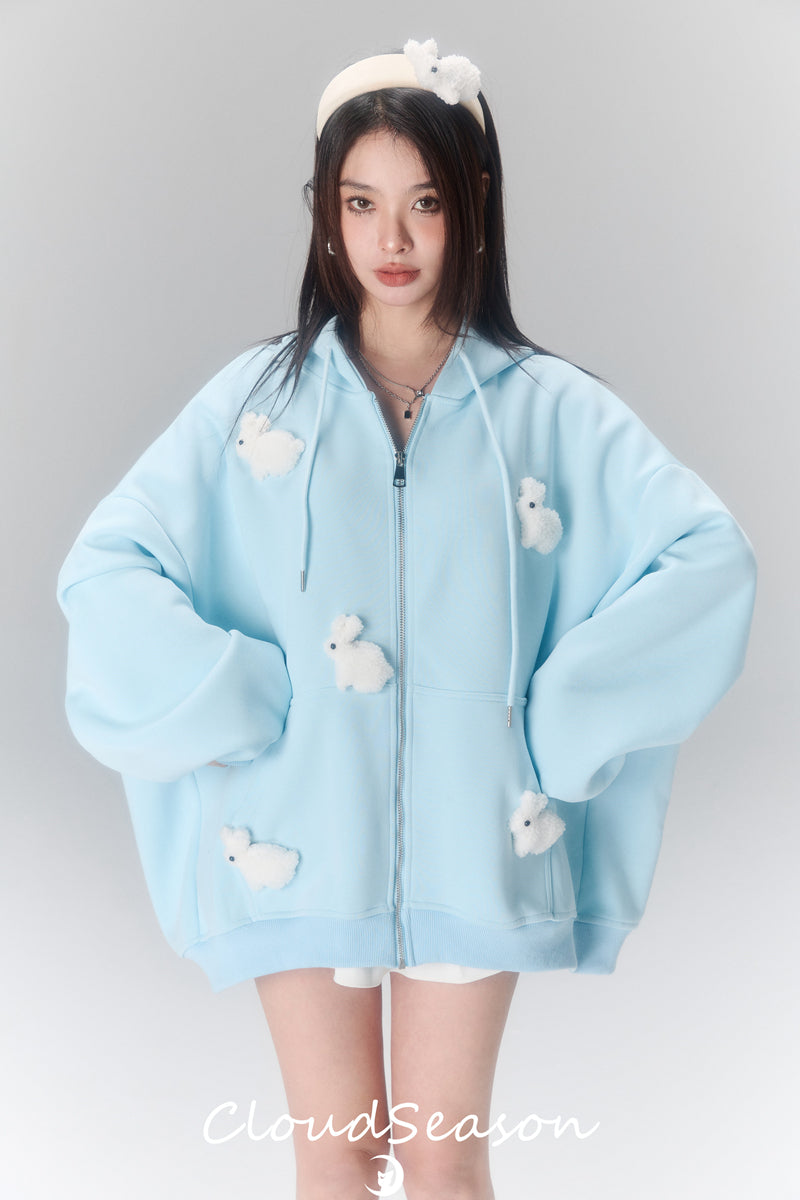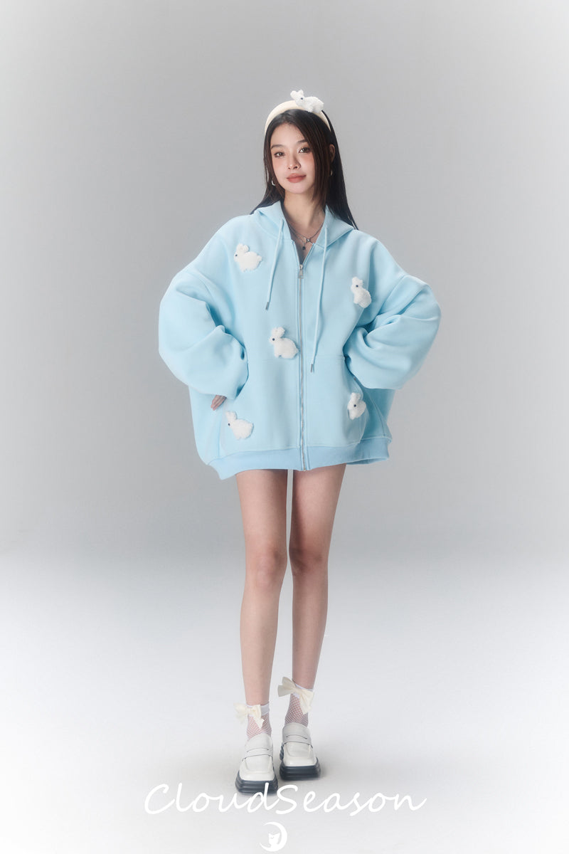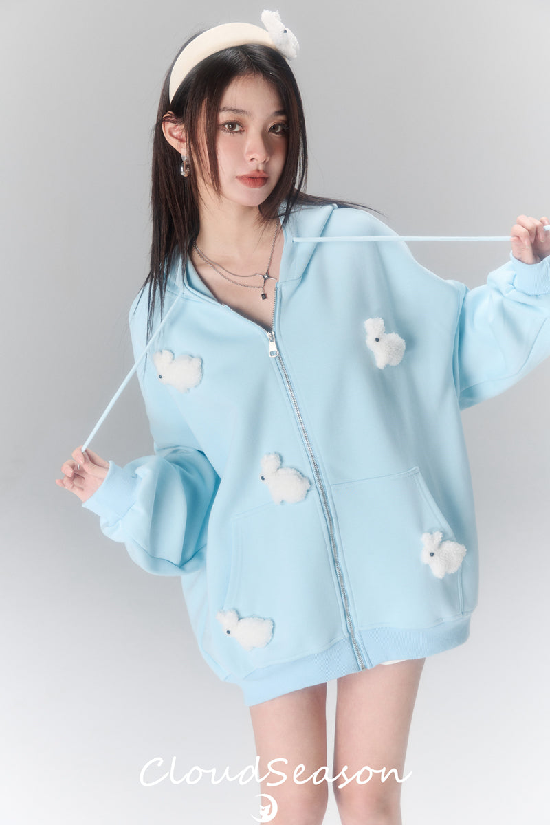 CLOUD SEASON RABBIT HOODED ZIPPER HOODIE