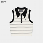 【PRE ORDER】COMPASS VINTAGE LAPEL KNITTED VEST/BLACK AND WHITE UTK013WSP