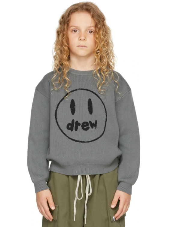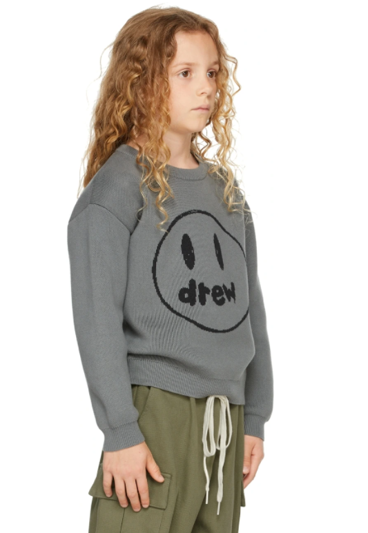 DREW HOUSE KIDS GRAY PAINTED MASCOT SWEATER