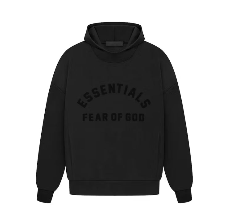 FEAR OF GOD ESSENTIALS ARCH LOGO HOODIE JET BLACK