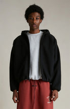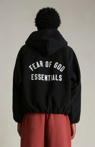 FEAR OF GOD ESSENTIALS BLACK BRUSHED YARN HOODED BOMBER JACKET