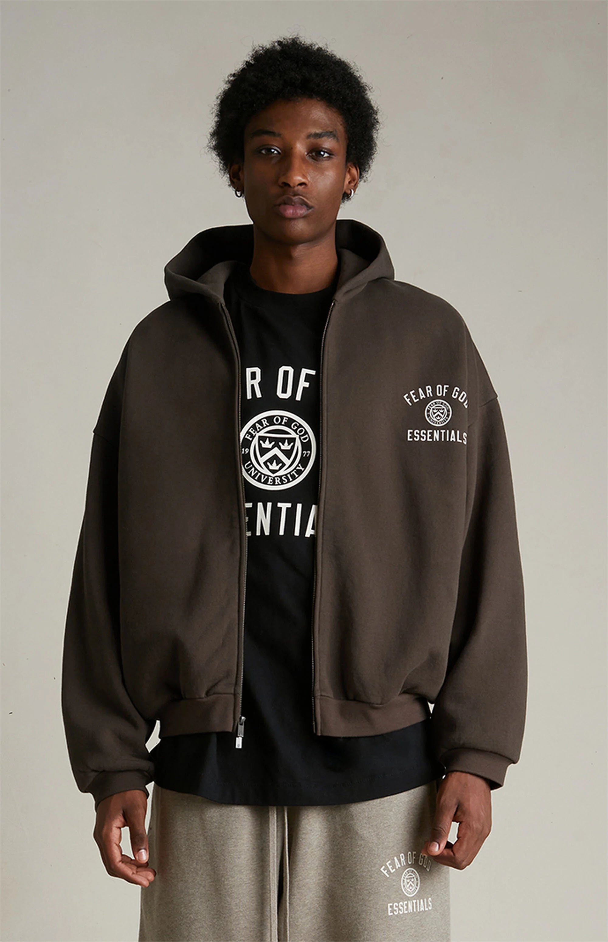 FEAR OF GOD ESSENTIALS BROWN HEAVY FLEECE FULLZIP HOODIE