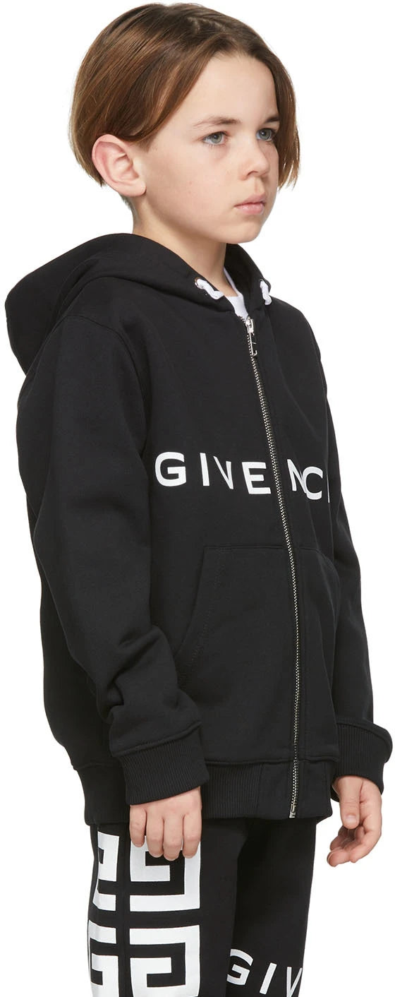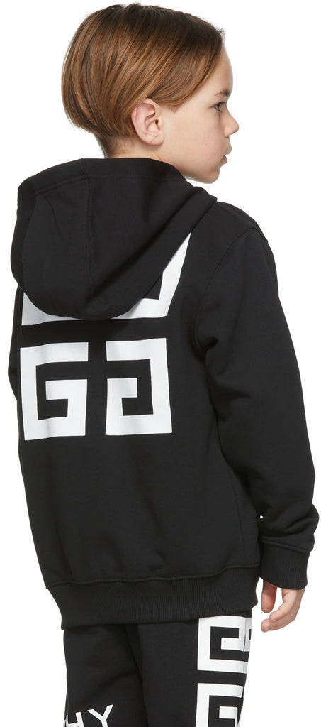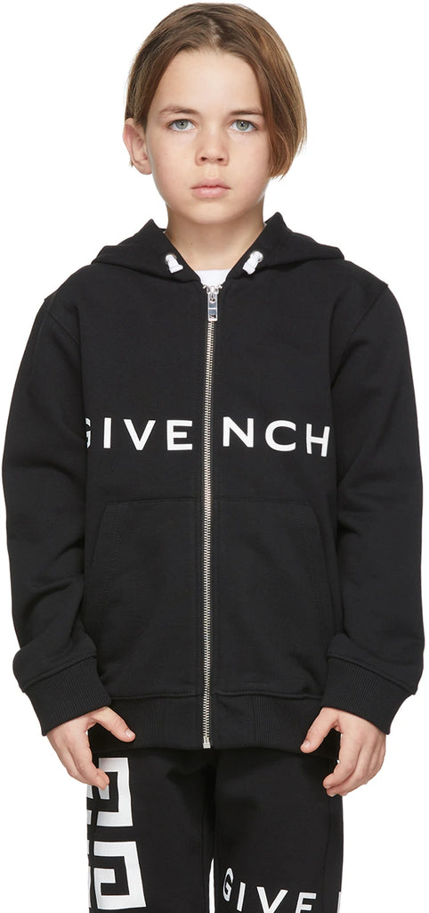 GIVENCHY KIDS BLACK LOGO ZIP-UP HOODIE