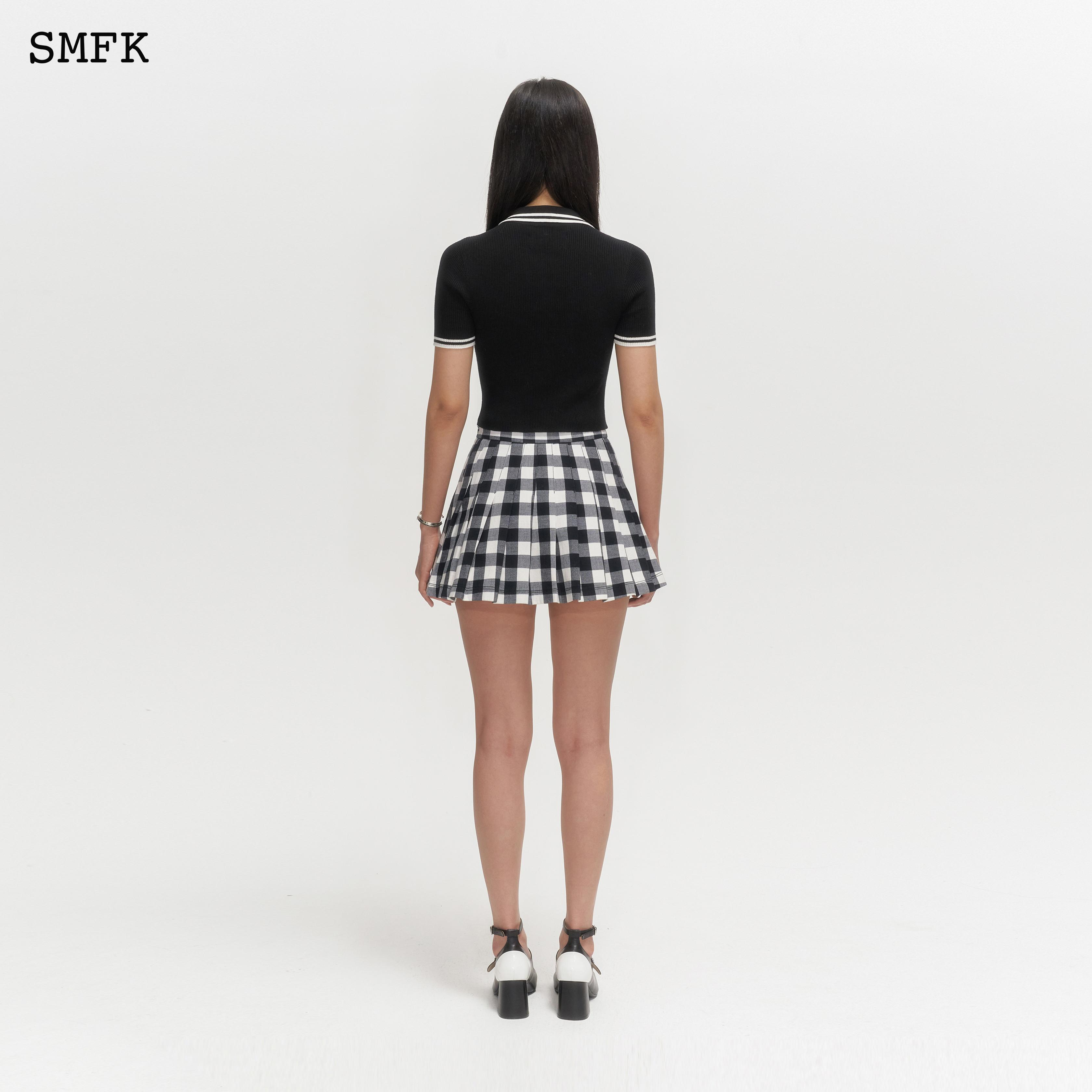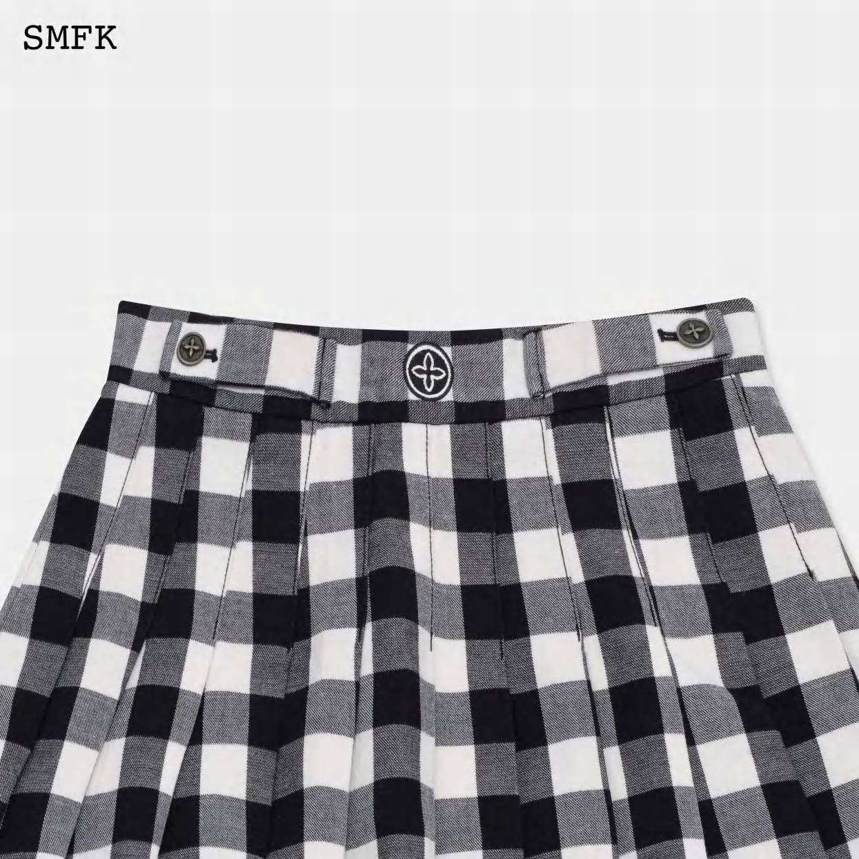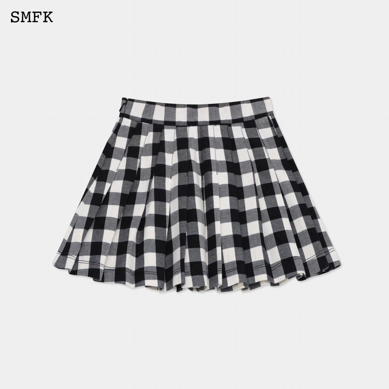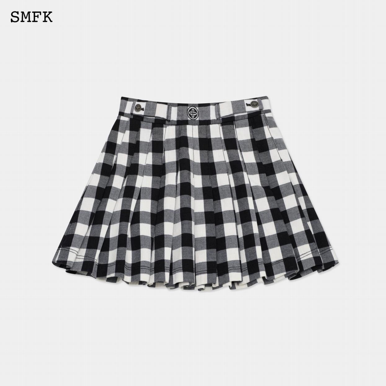 【PRE ORDER】SMFK GRASSLAND BLACK AND WHITE PRAIRIE PLAID PLEATED SKIRT US004BWC