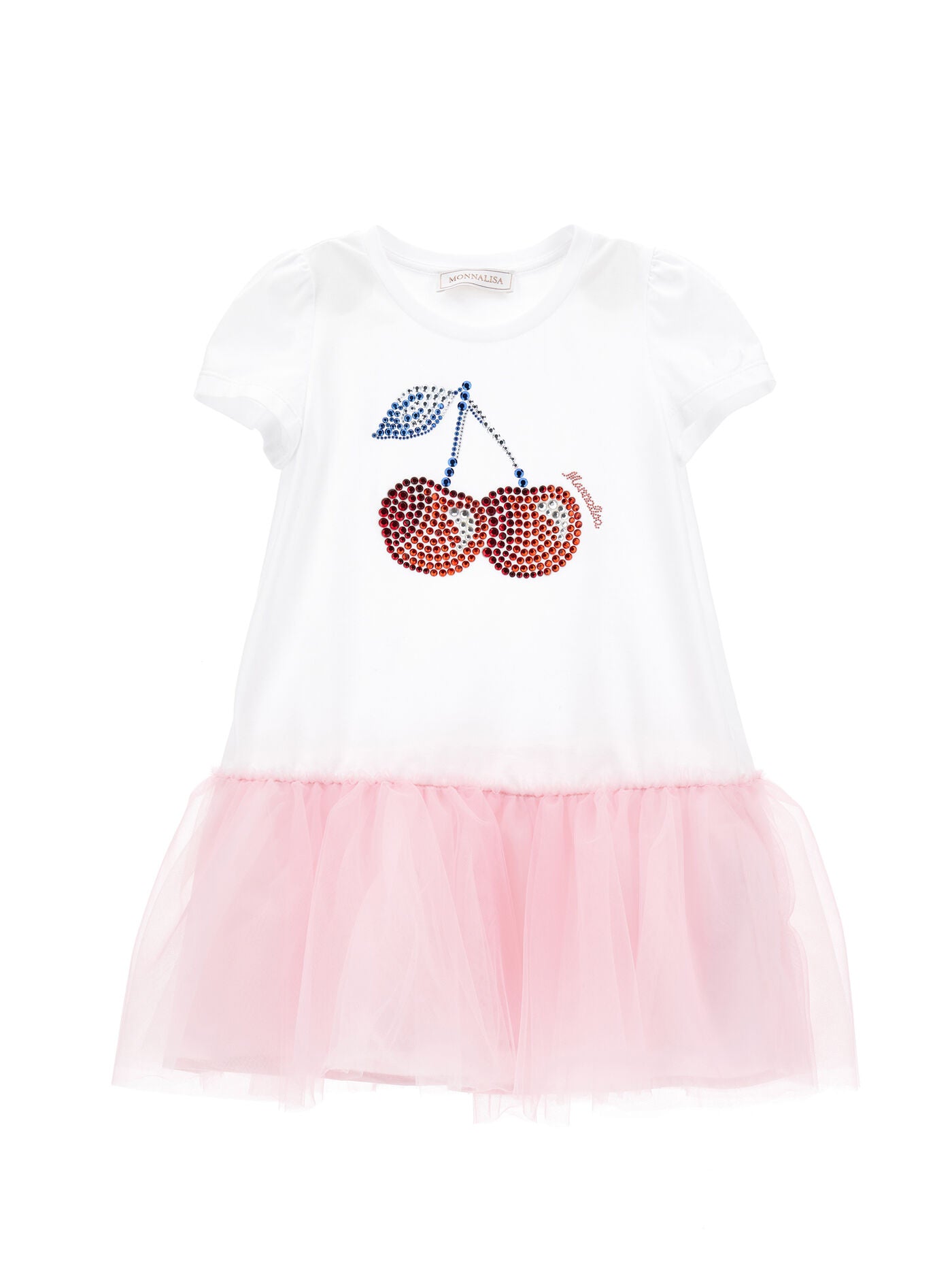 MONNALISA COTTON DRESS WITH EMBROIDERED CHERRIES