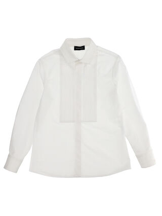 A flawless long-sleeved poplin tuxedo shirt, elegant just like Daddy's
