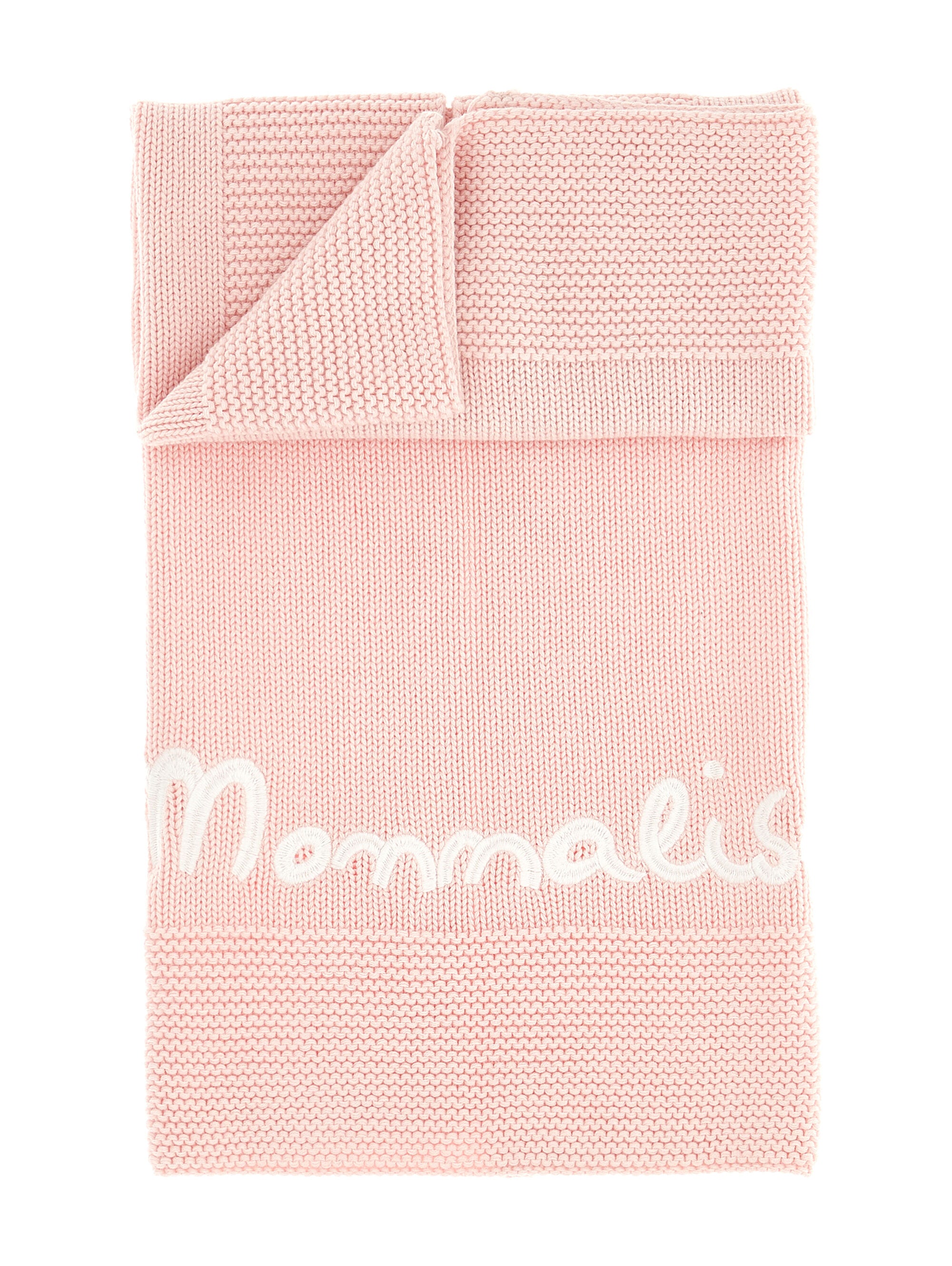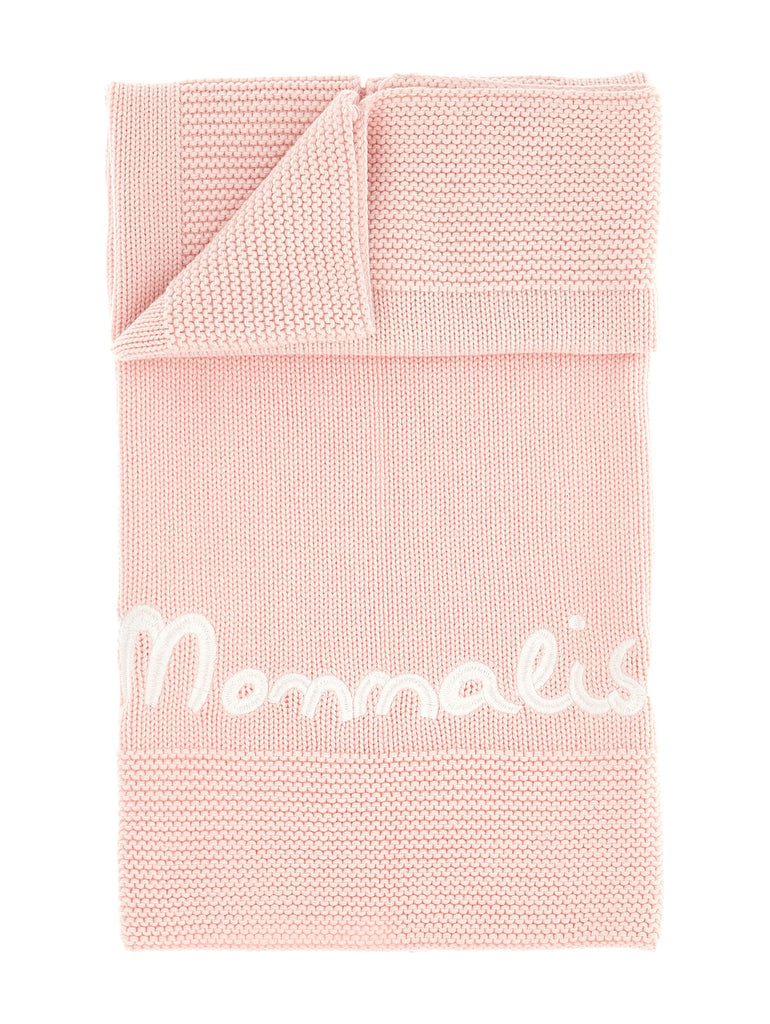 MONNALISA PINK EMBROIDERED KNITTED BLANKET