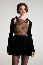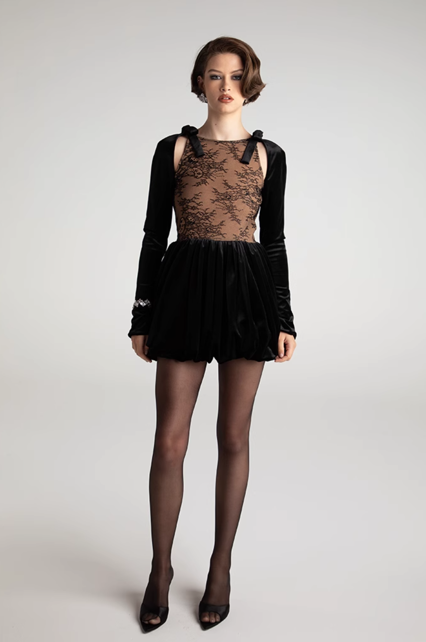 NANA JACQUELINE BOW LACE GAUZE POMMEL DRESS