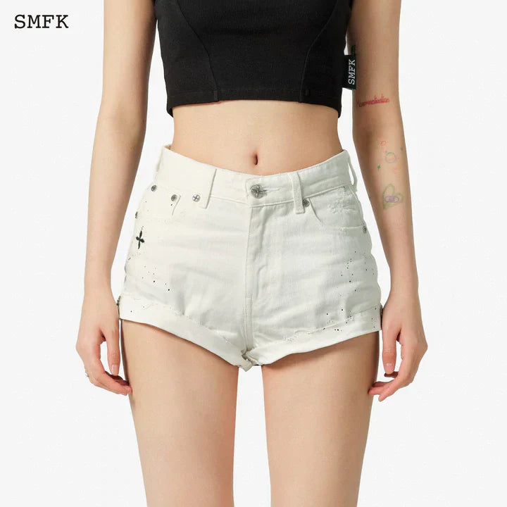 SMFK COMPASS STRAIGHT LEG SHORTS WHITE PS002W+