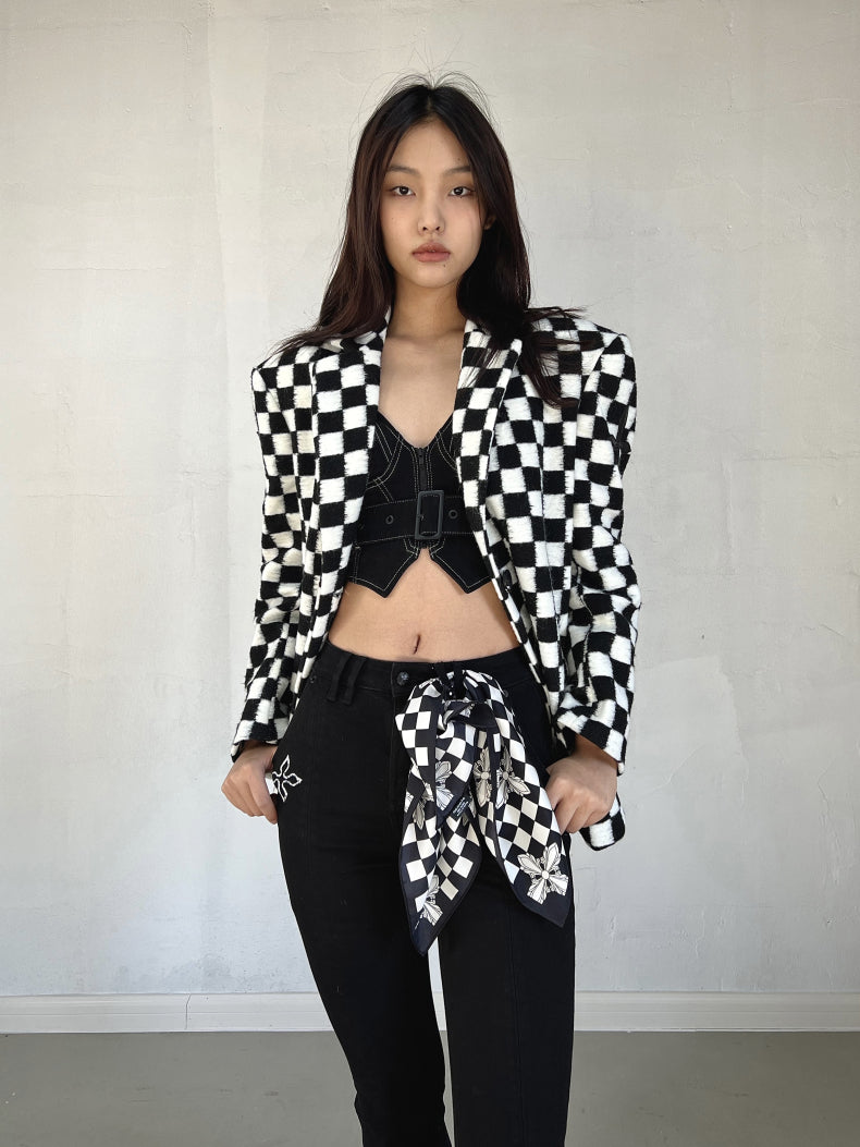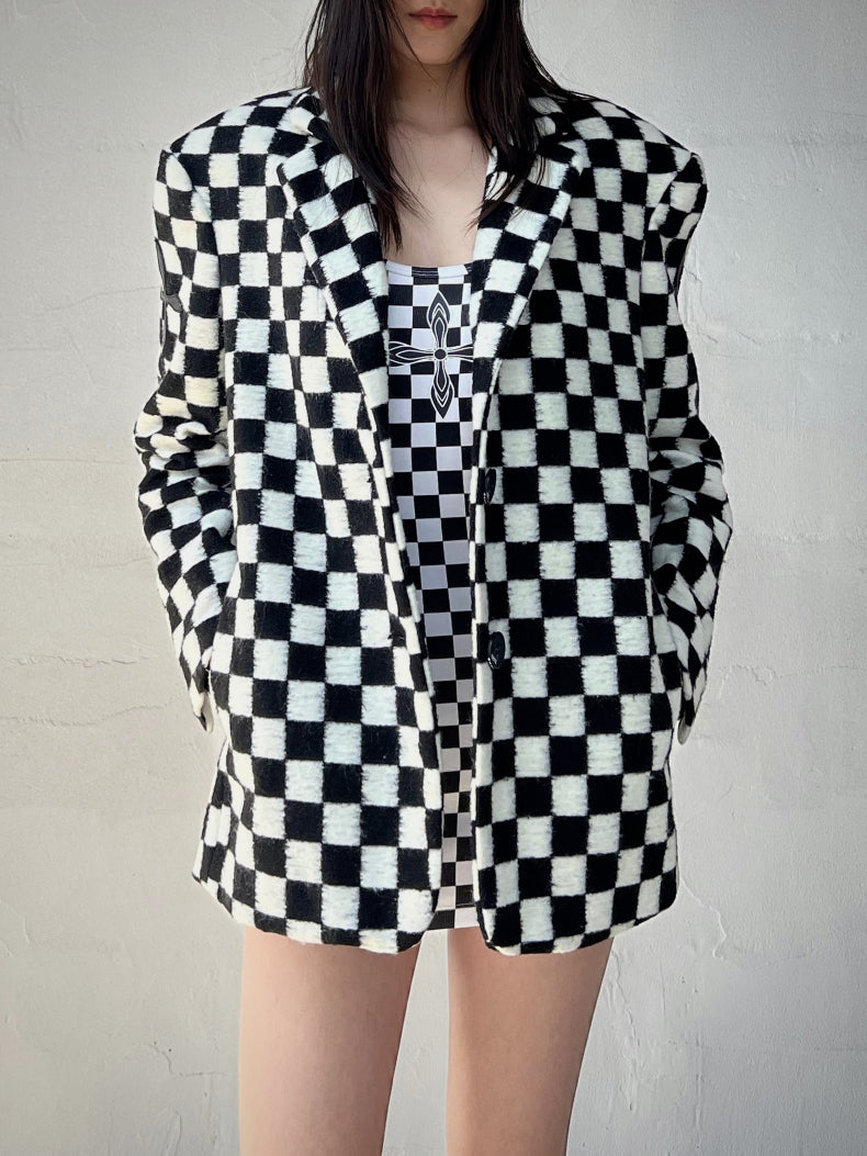 GRID BLACK AND WHITE CHECK SUIT SU001BW