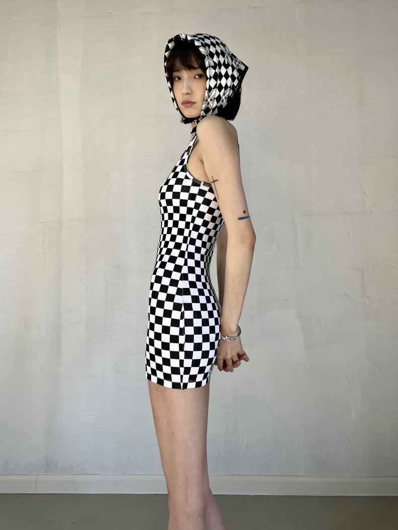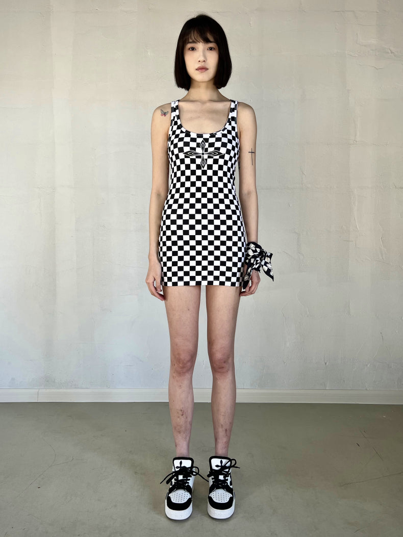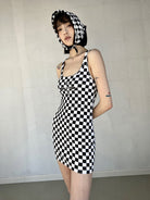 GRID BLACK AND WHITE CHECKED SUNDRESS UFT12BW
